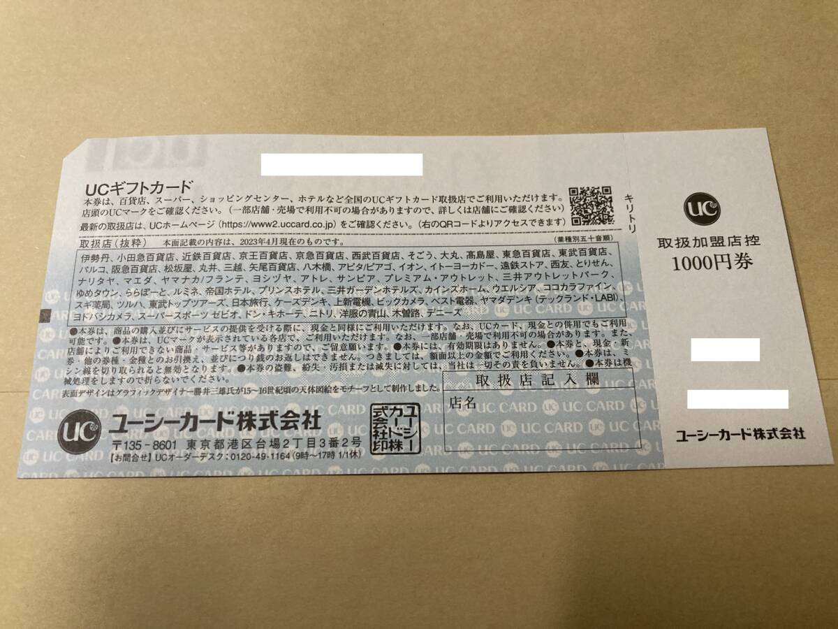 即決★UCギフトカード 1000円券(1枚)【ミニレター対応(送料85円)】★01
