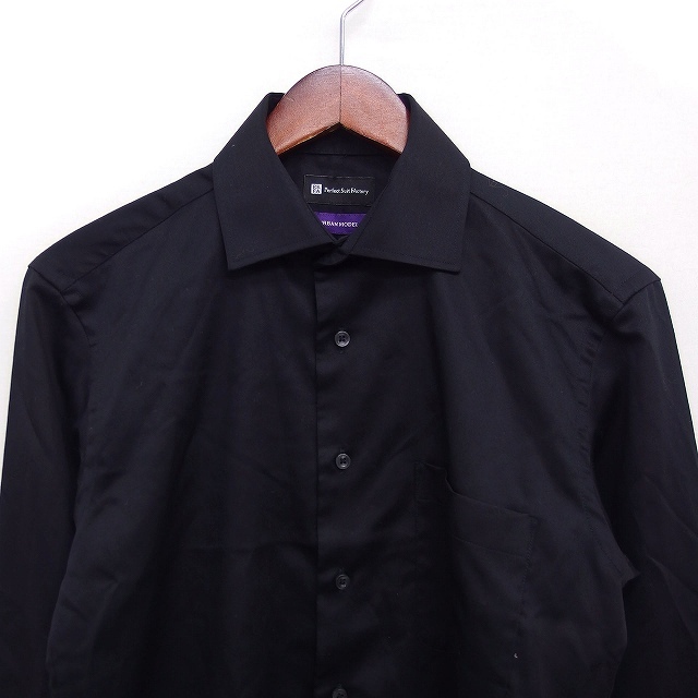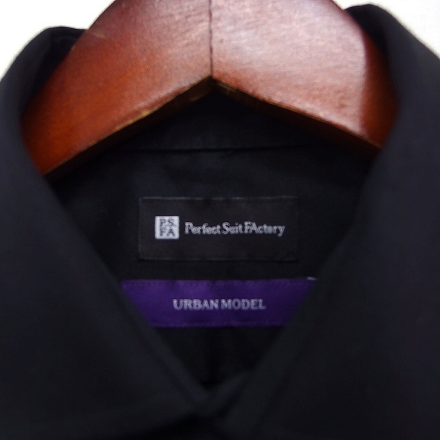パーフェクトスーツファクトリー Perfect Suit FActory セミワイドカラー 長袖 ワイシャツ Yシャツ 無地 S ブラック 黒 /FT38 メンズ