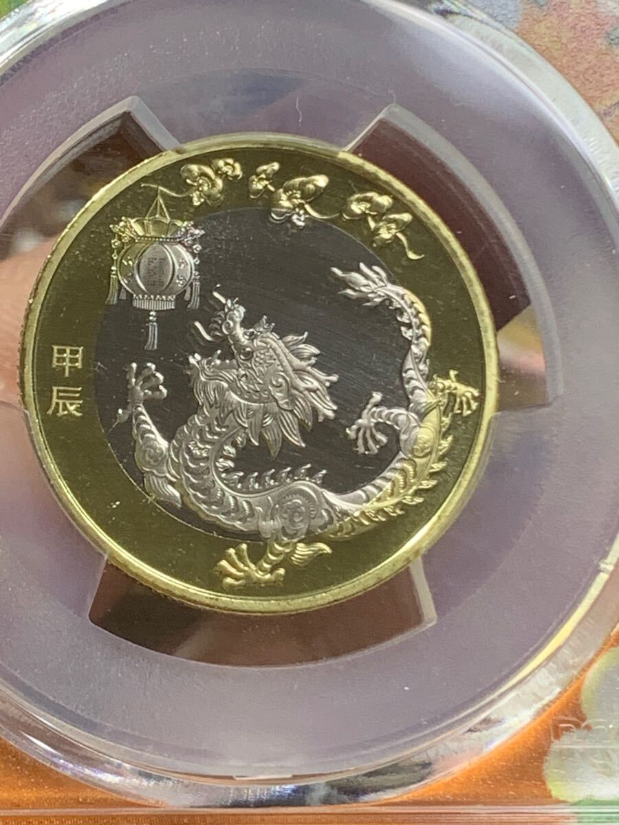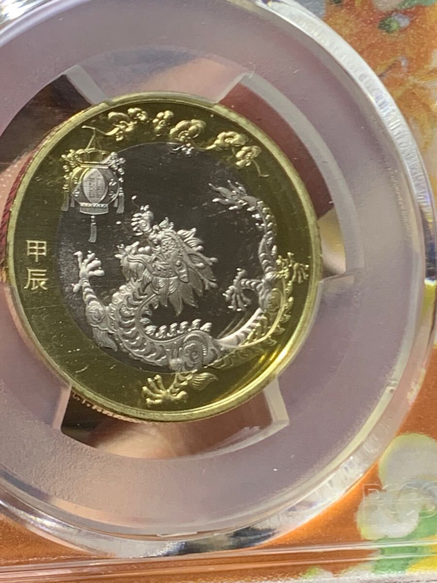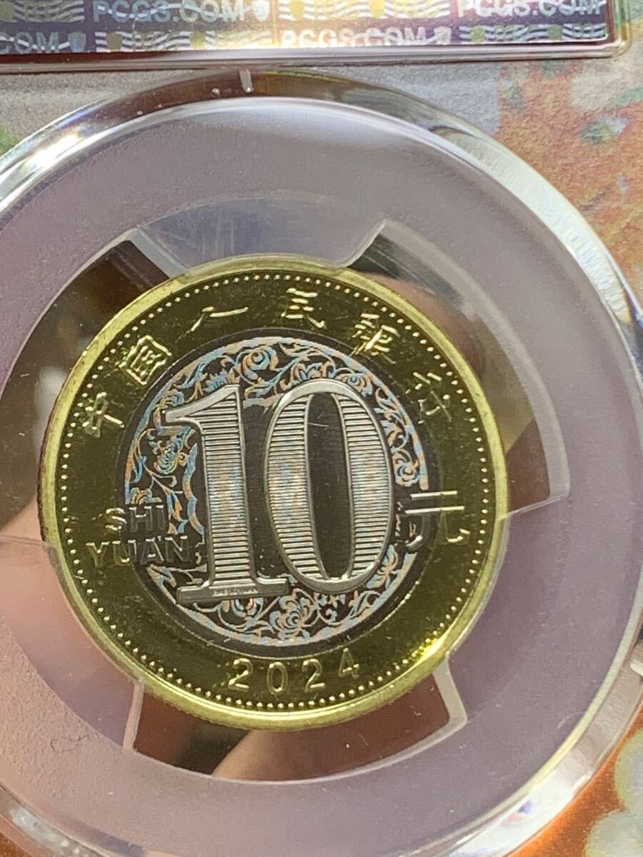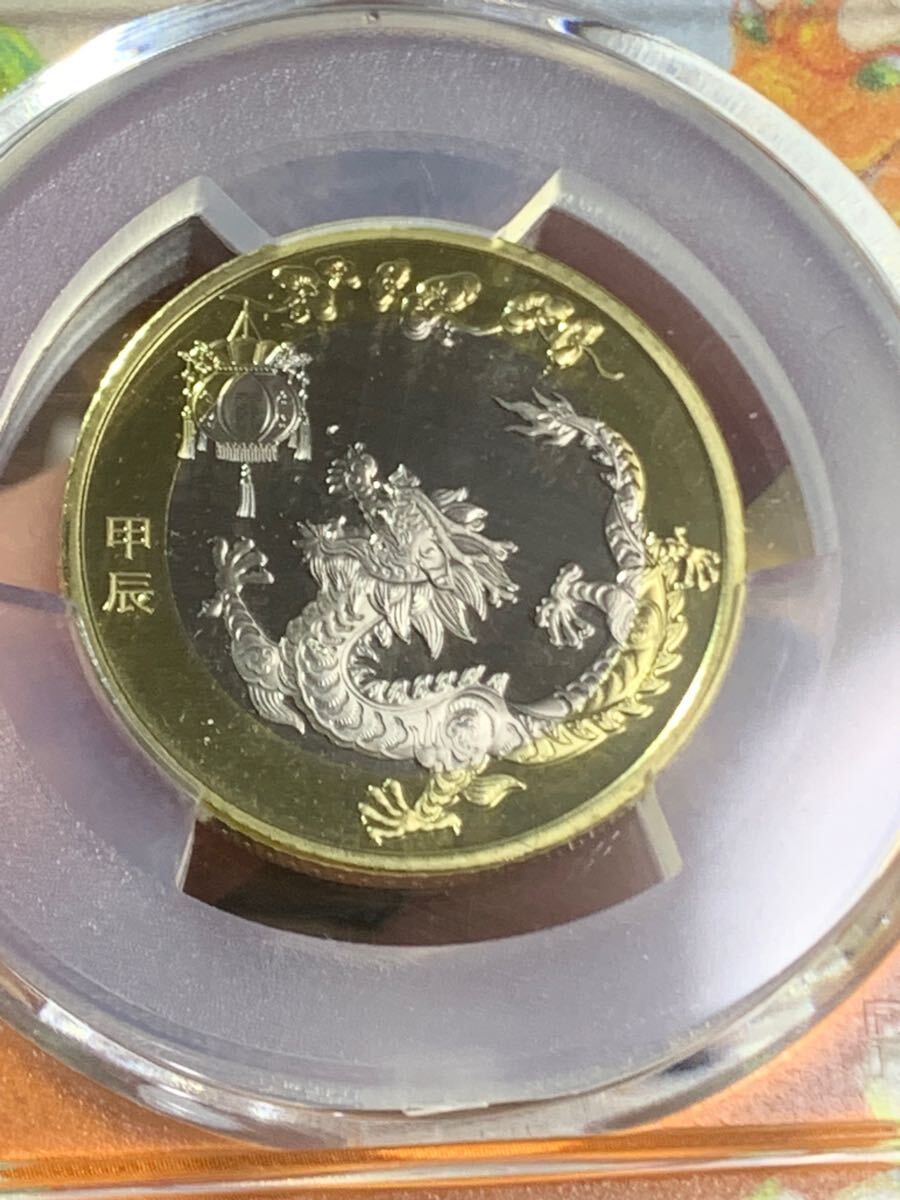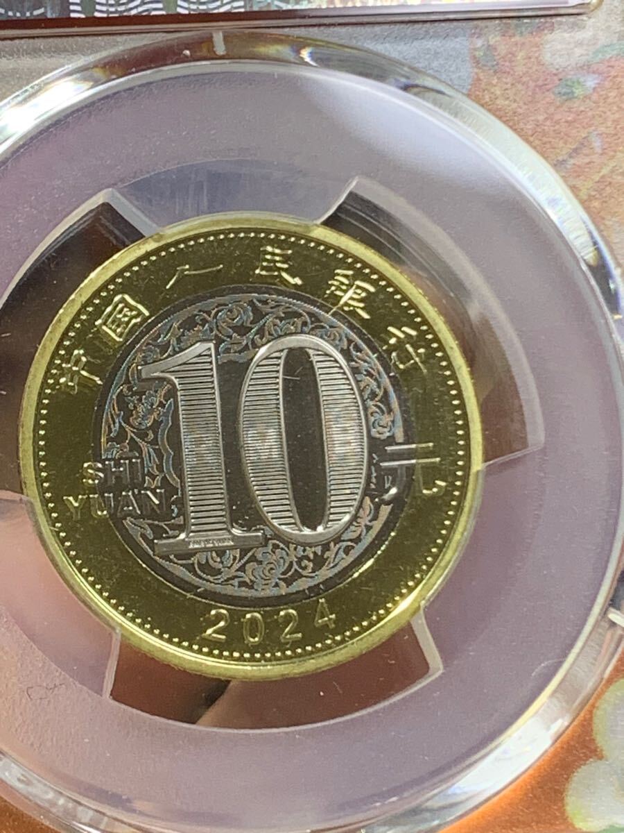2024年発行の中国ドラゴンバイメタリック10元硬貨、PCGS MS69PL認定品。