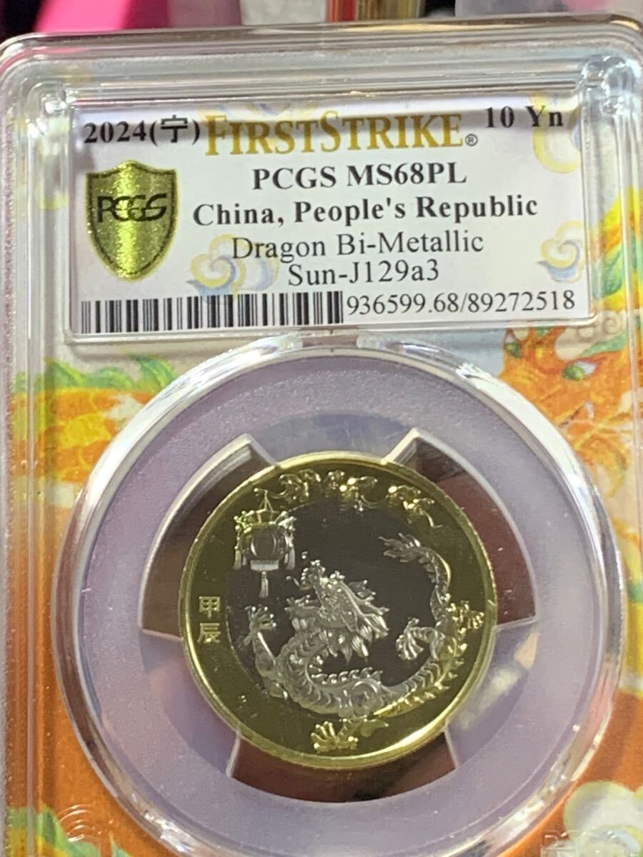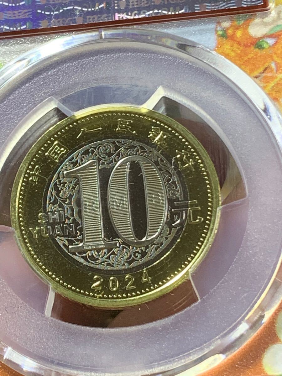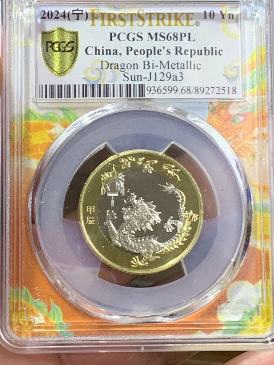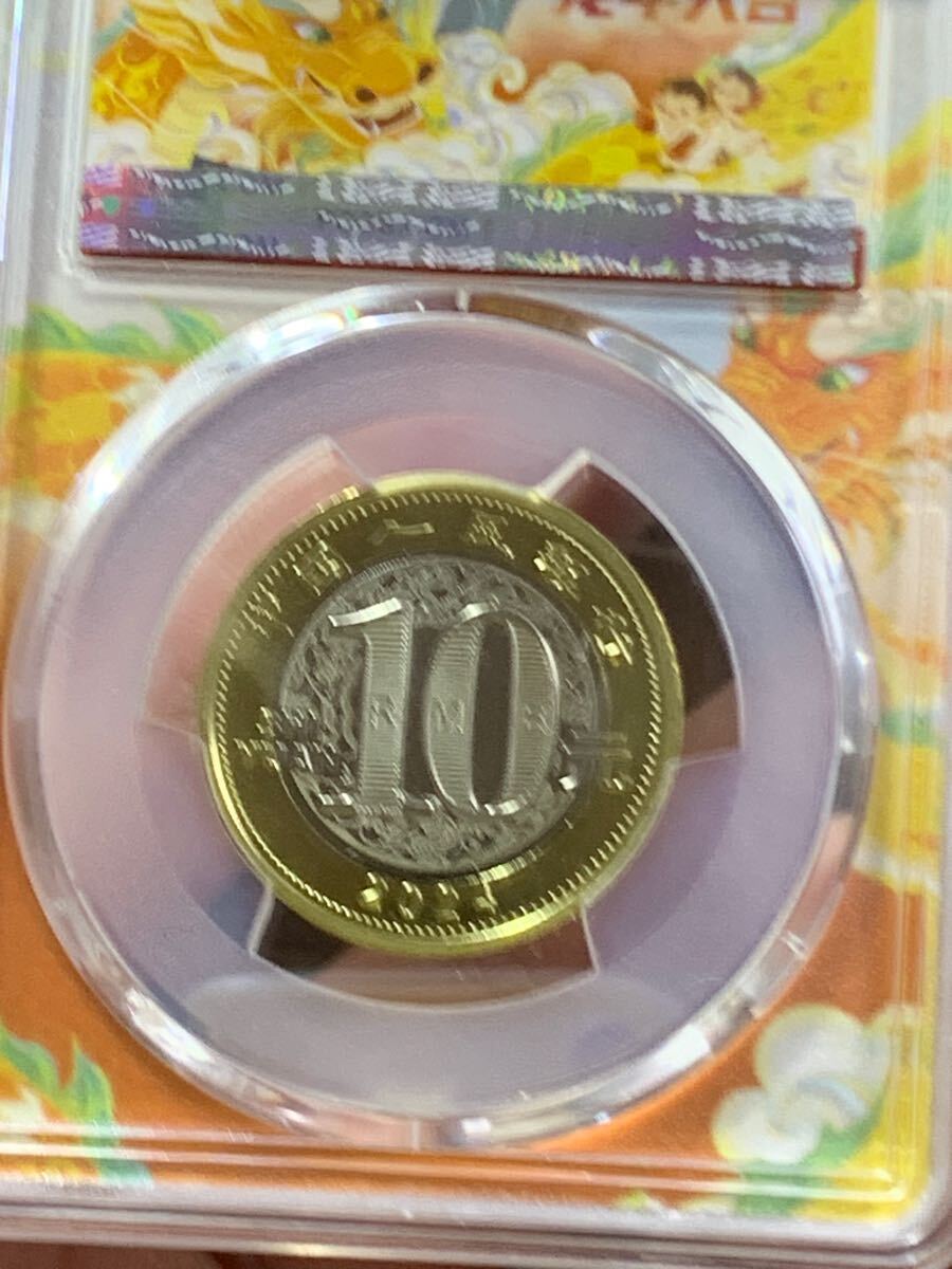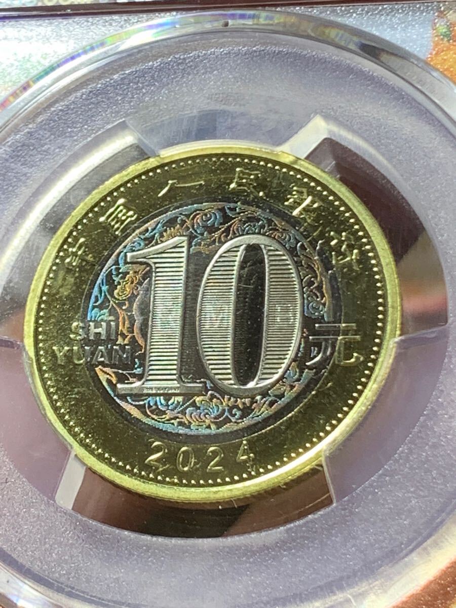 2024年発行の中国ドラゴンバイメタリック10元硬貨、PCGS MS69PL認定品。