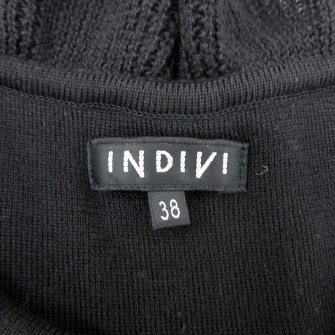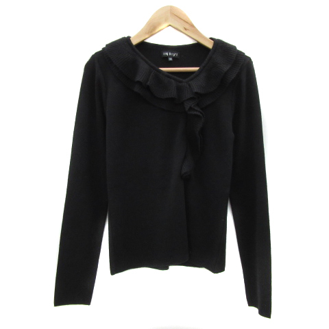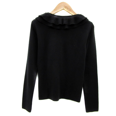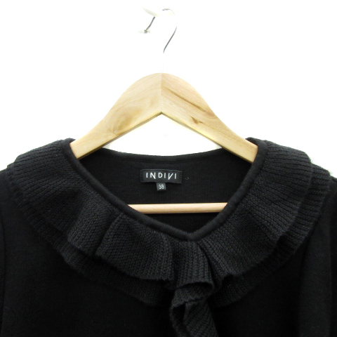 インディヴィ INDIVI ニット カットソー 長袖 Vネック 無地 フリル 38 M 黒 ブラック /YS37 レディース