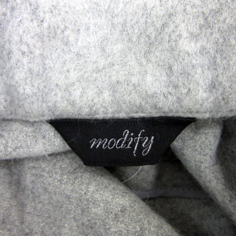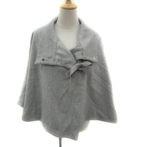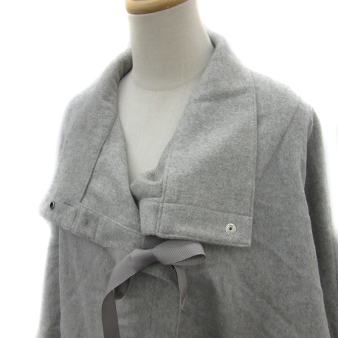モディファイ Modify ジャケット ポンチョ ミドル丈 ステンカラー 無地 リボン アンゴラ 40 L グレー /YS24 レディース