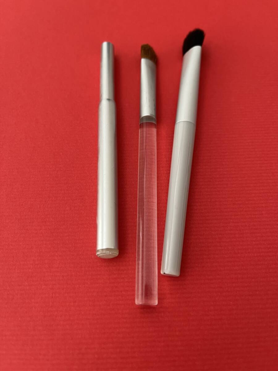 リップブラシ:携帯用でアルミケース、こちらもリスかイタチ毛の天然毛だと思います。