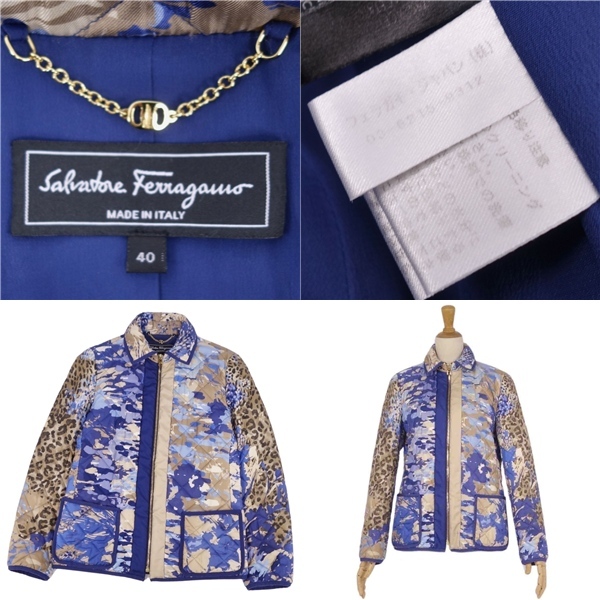 | 美品 サルヴァトーレ フェラガモ Salvatore Ferragamo ジャケット キルティング 中綿入り シルク アウターレディース 40 |