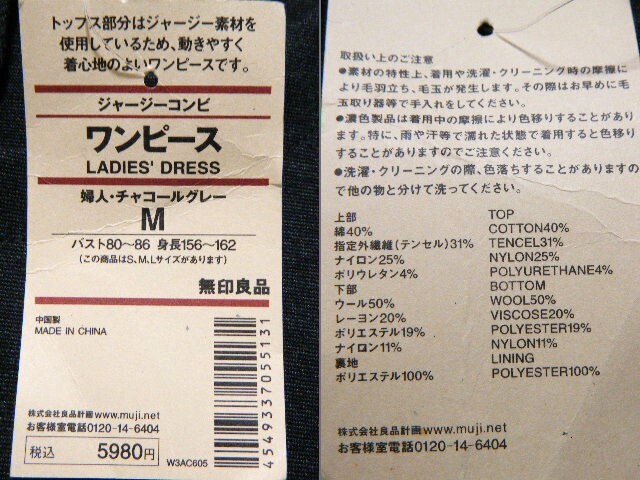 無印良品 ジャージー コンビ ワンピース M れ6094 レターパックプラス