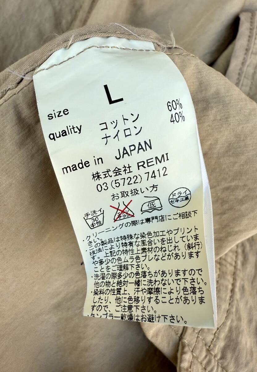 ★ジャパンメイド★REMI RELIEF★レミレリーフ★ステンカラーコート★ベージュ★サイズL★コットン★ナイロン★春秋★