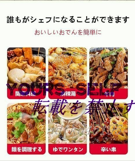 1、電気おでん鍋:20L大容量,9グリッド+ストックポット2個,サイズ:51.5cm×37.5cm×30cm、100-110V電圧、50Hz/60Hz、日本仕様電源プラグ、日本語取扱説明書付き(ご使用前に取扱説明書をご確認ください)。業務用、家庭用。多用途おでん鍋。仕切り付。格子取り外し可能。