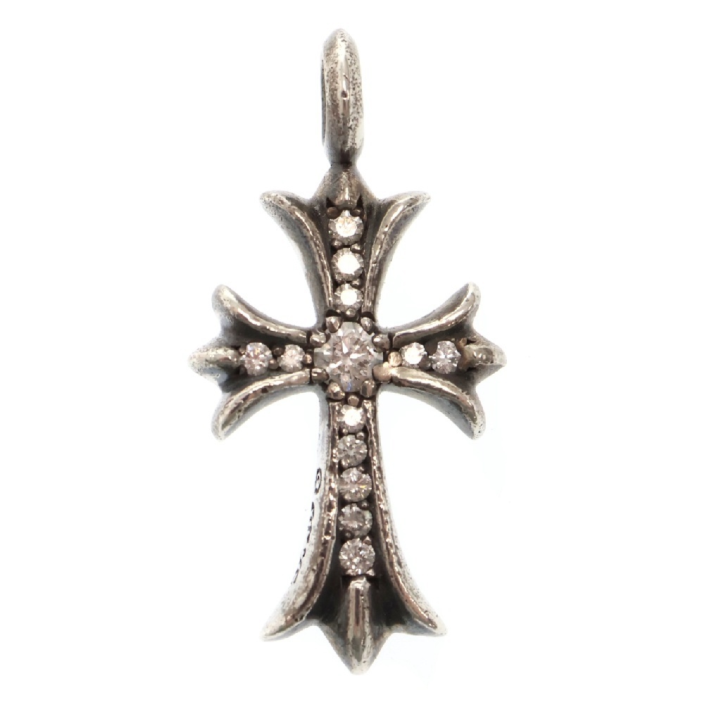 CHROME HEARTS クロムハーツ TNY CRSF P DMND タイニーファットクロス PAVEダイヤ ペンダント シルバーネックレストップ シルバー