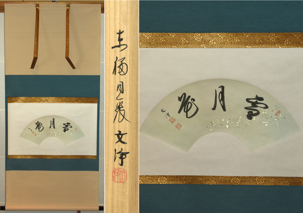 【真作】西部文浄「雪月花」扇面 紙本 肉筆 掛軸 共箱 東福寺塔頭 同聚院住職 茶掛 |