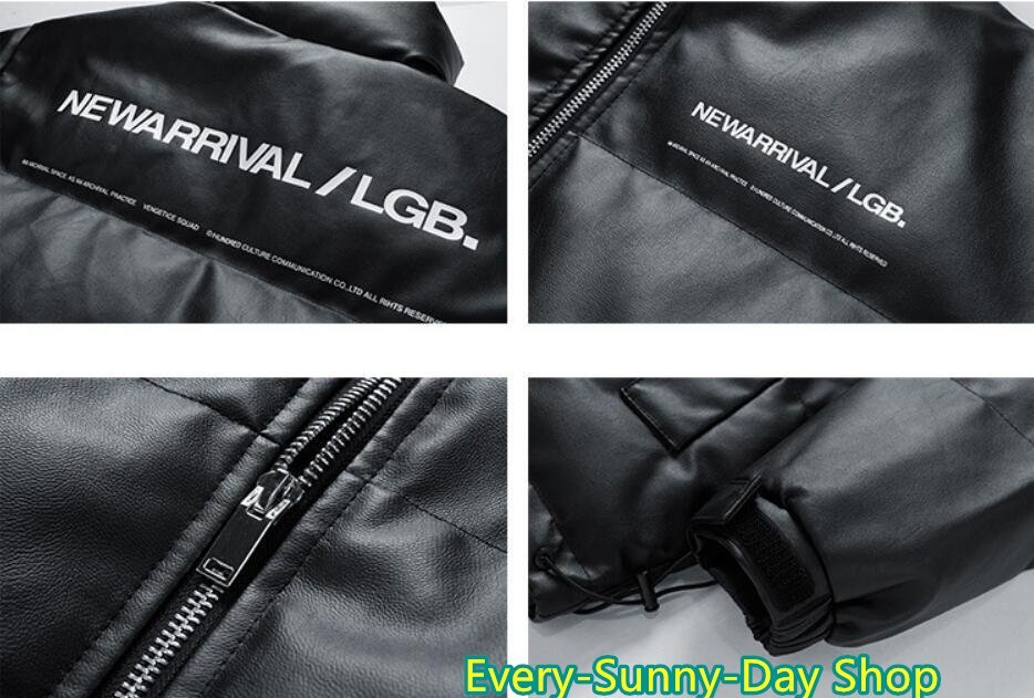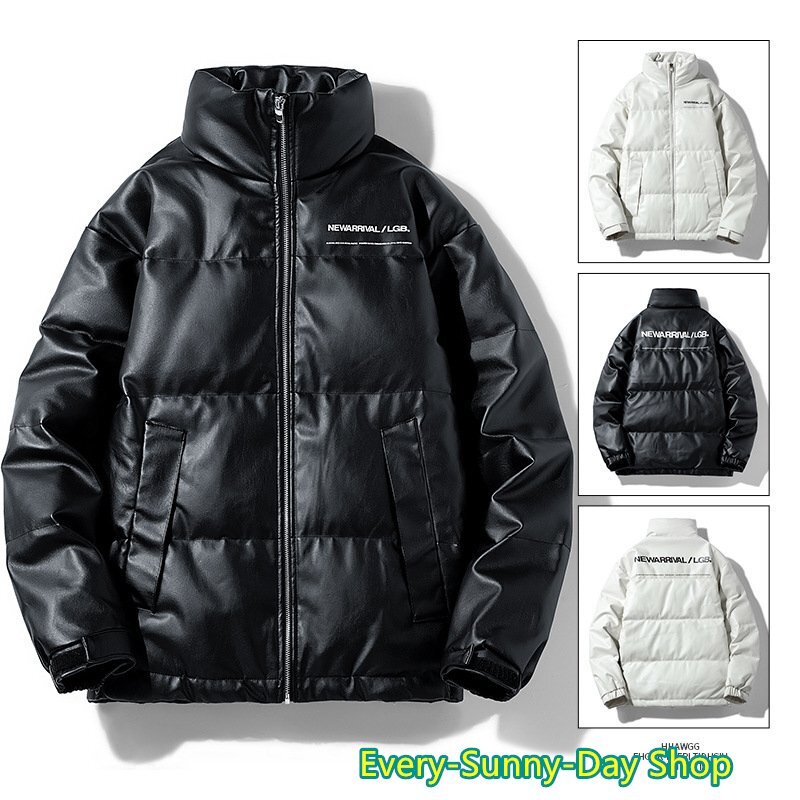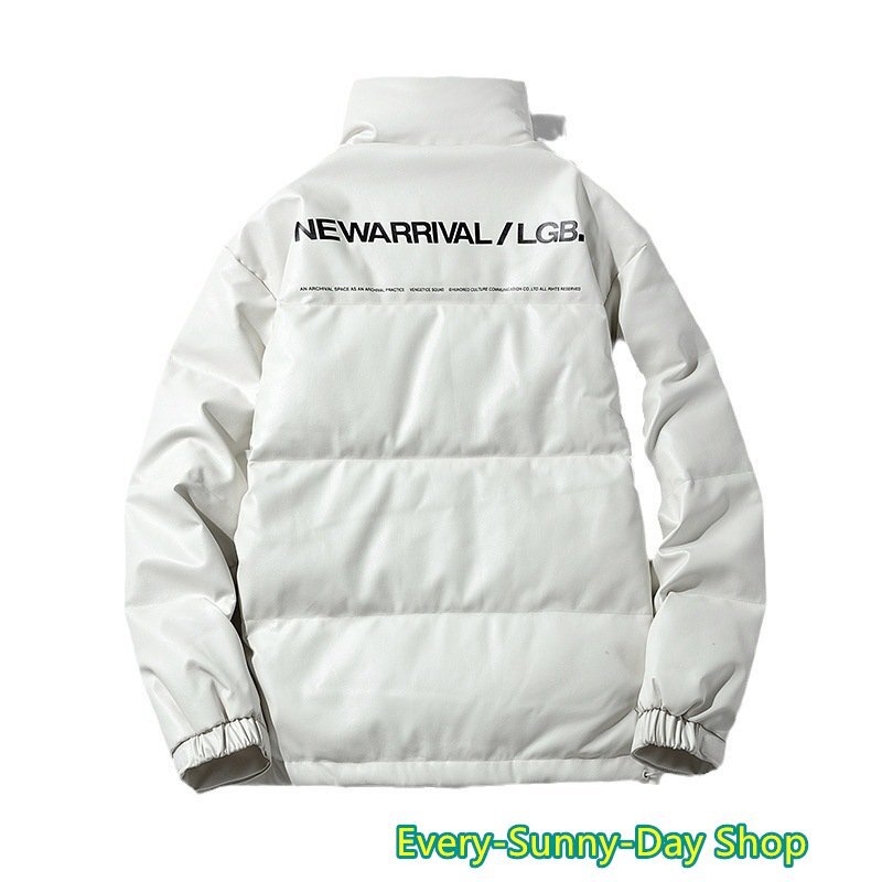 新品 ダウンジャケット PUレザージャケット メンズ ダウンコート アウター 防風 防寒着 ジャンパー 男性 オフホワイト 3XLサイズ選択可