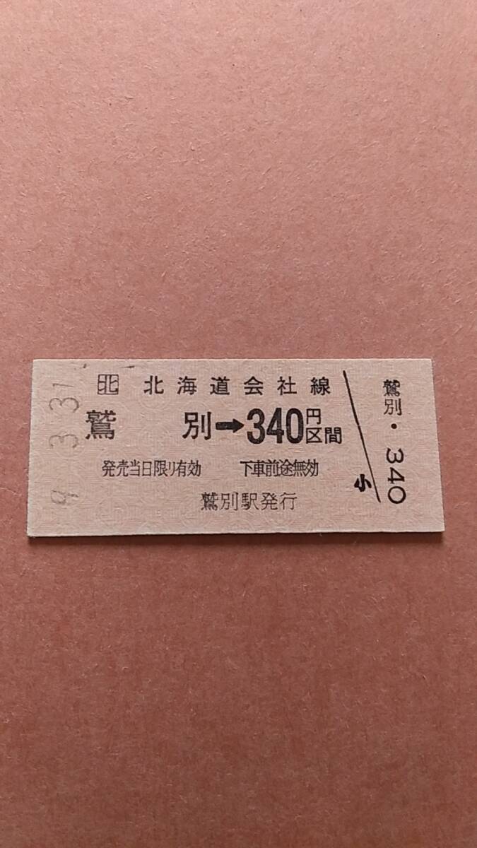JR北海道 室蘭本線 鷲別→340円区間 鷲別駅発行
