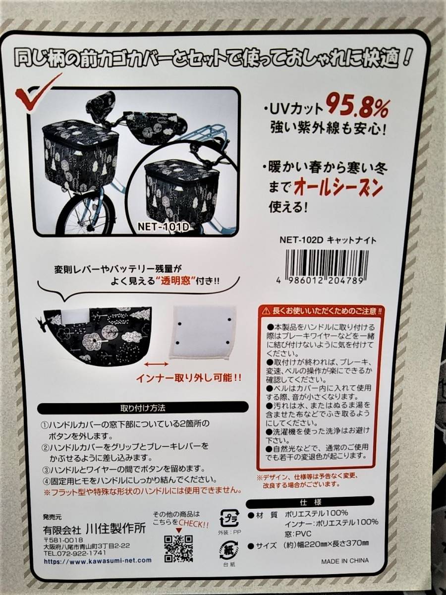 自転車用品 アシスト自転車/一般 ハンドルカバー  オールシーズン対応 ボア取外可 UVカット 防水 【キャットナイト】 川住製作所
