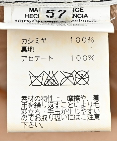 メイン素材:カシミヤ100%、(裏地)アセテート100%