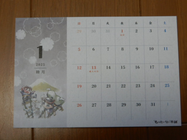 ■非売品・レア もったいない本舗-もたろう&おにさん-イラストカレンダー/ポストカードサイズ年間・1月