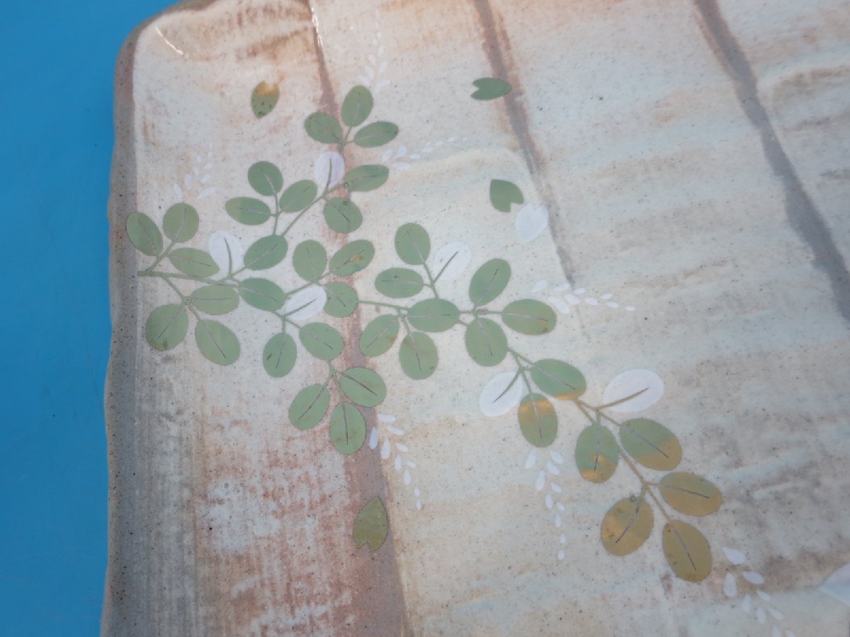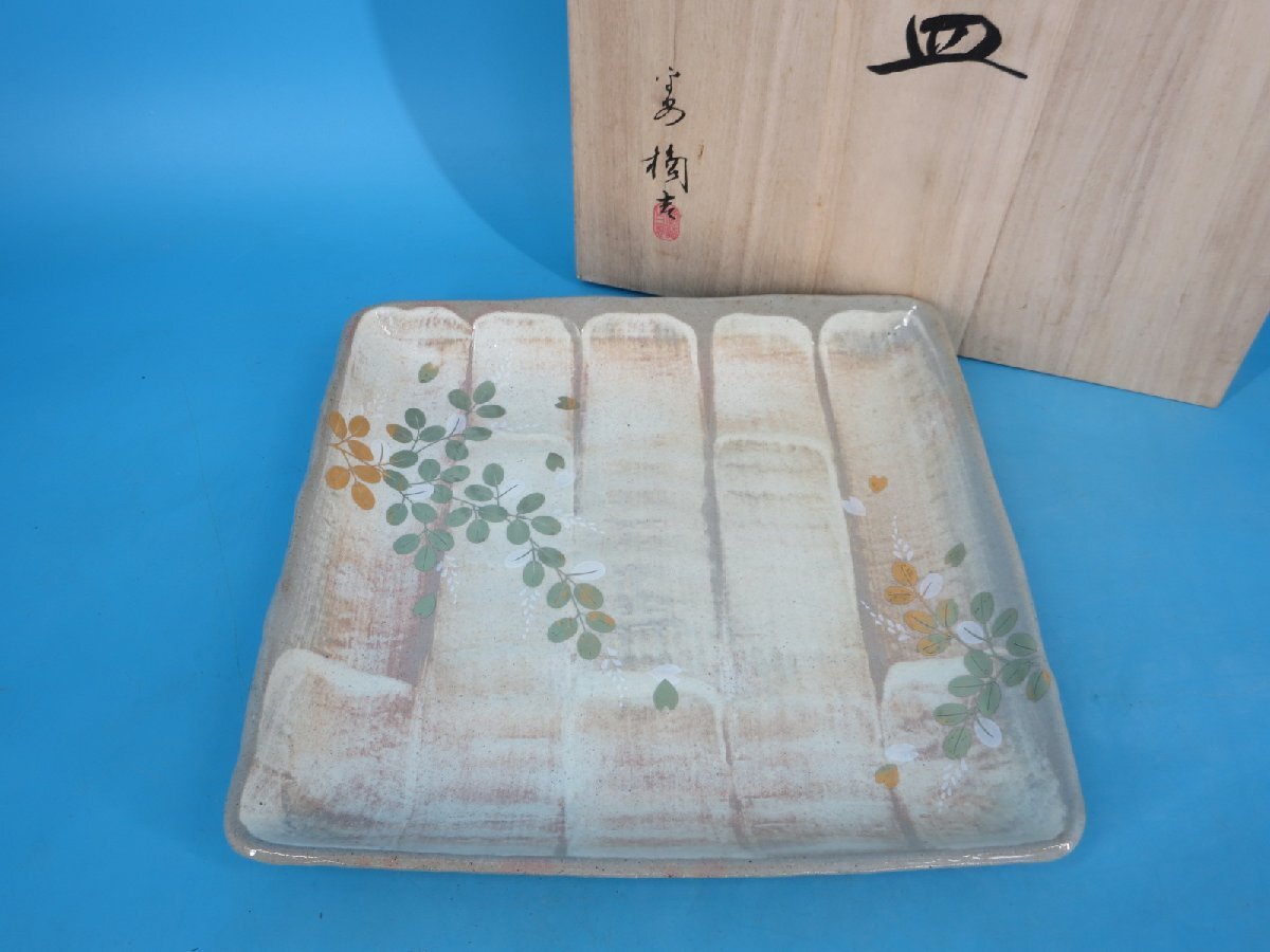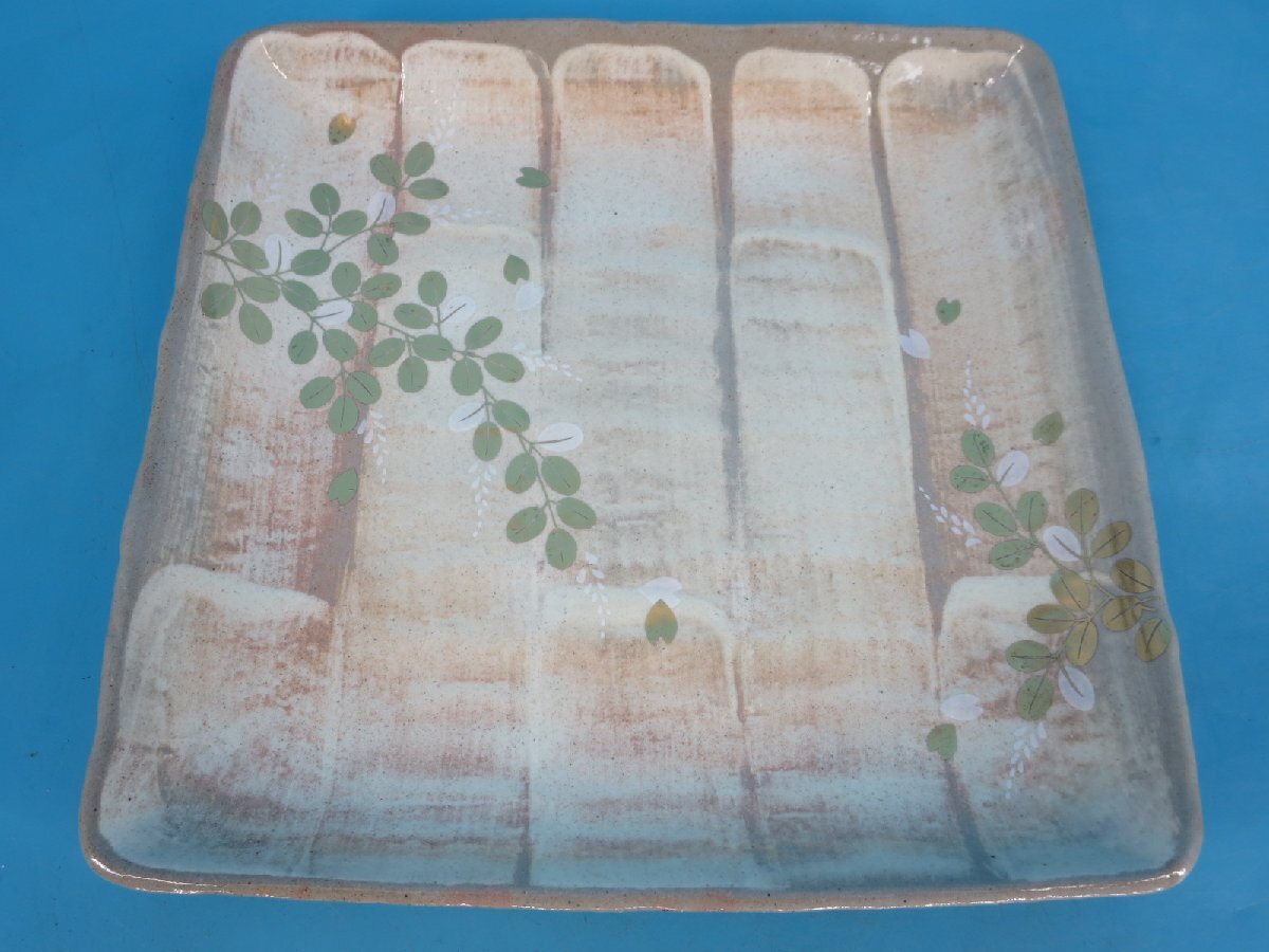 未使用 たち吉 橘吉 金彩草花 盛皿 角皿 大皿 和食器 約28.5×28.5cm 共箱 (DLU88