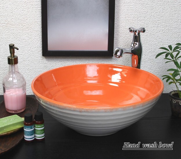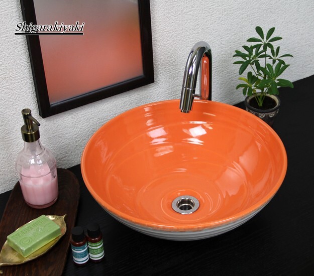 | 商品名 | 信楽焼 オレンジホワイト手洗い鉢(中型) |
