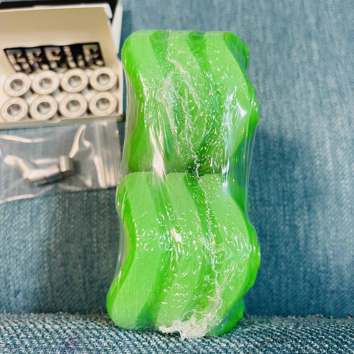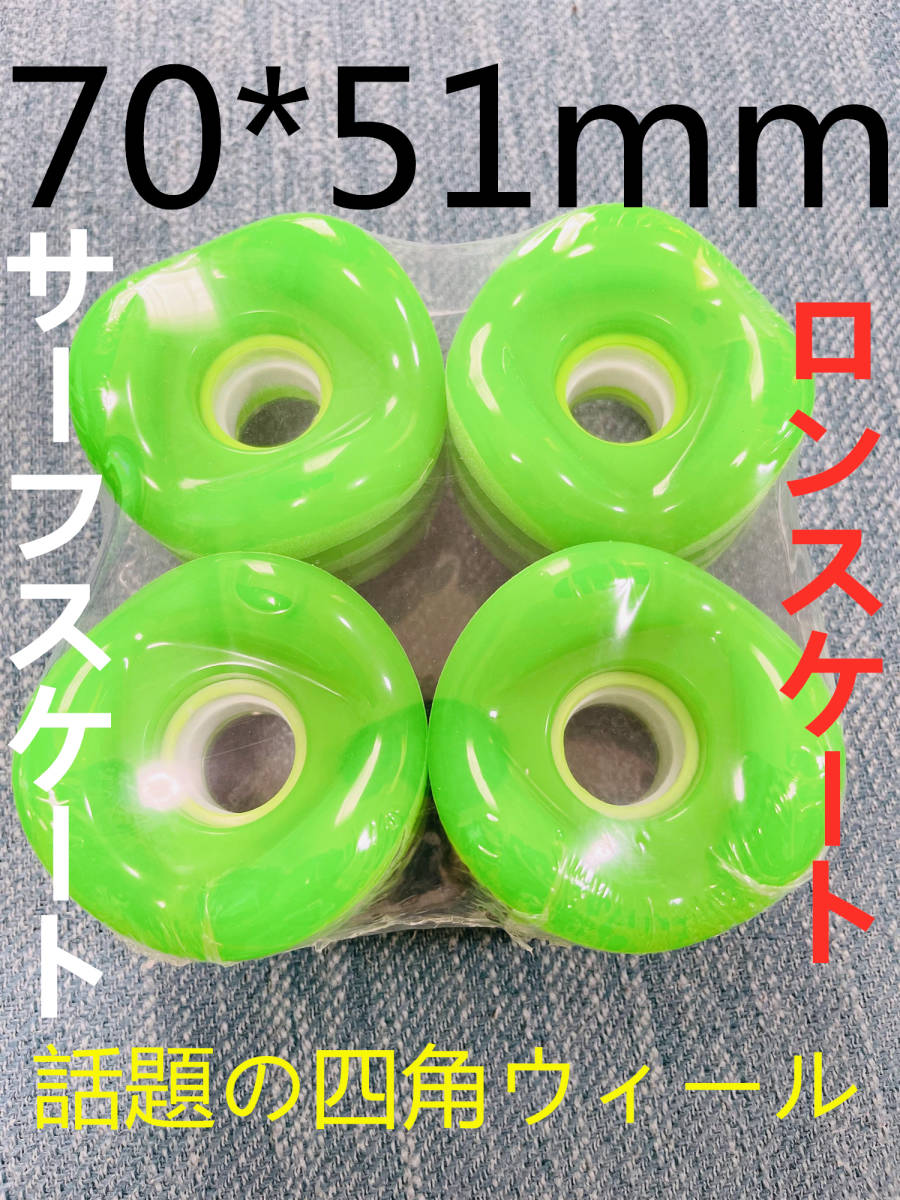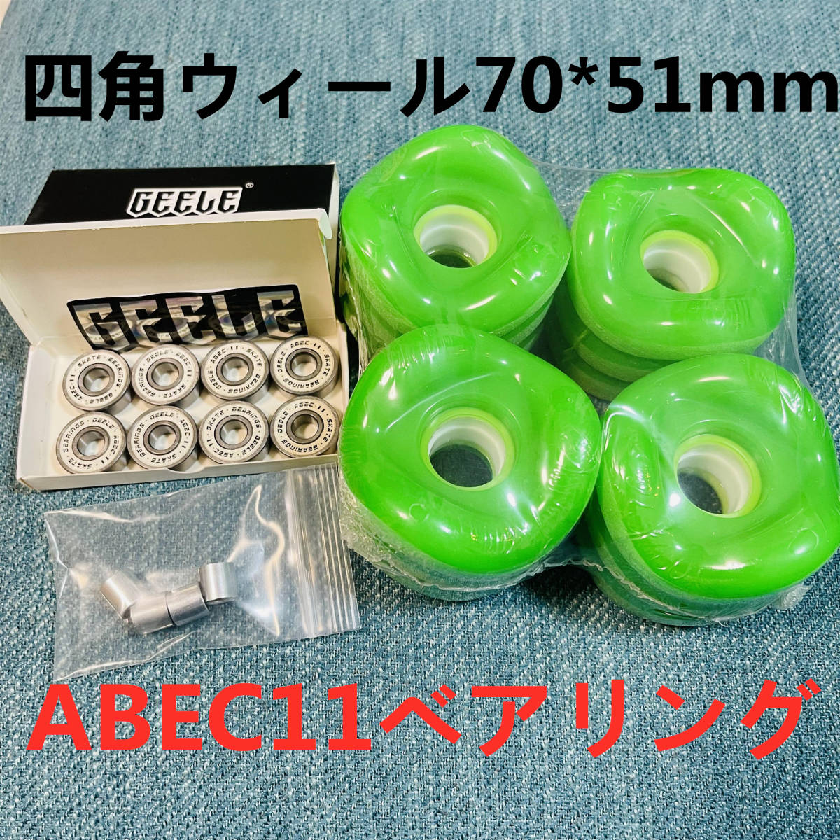 話題四角ウィール Carver カーバー、YOW、ロングスケートボード対応 70*51mmソフトウィール ABEC11ベアリング、スペーサー付き 緑色