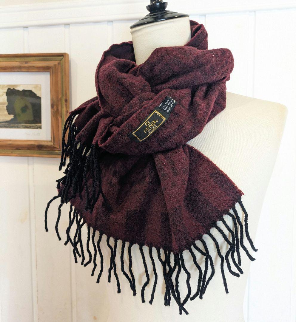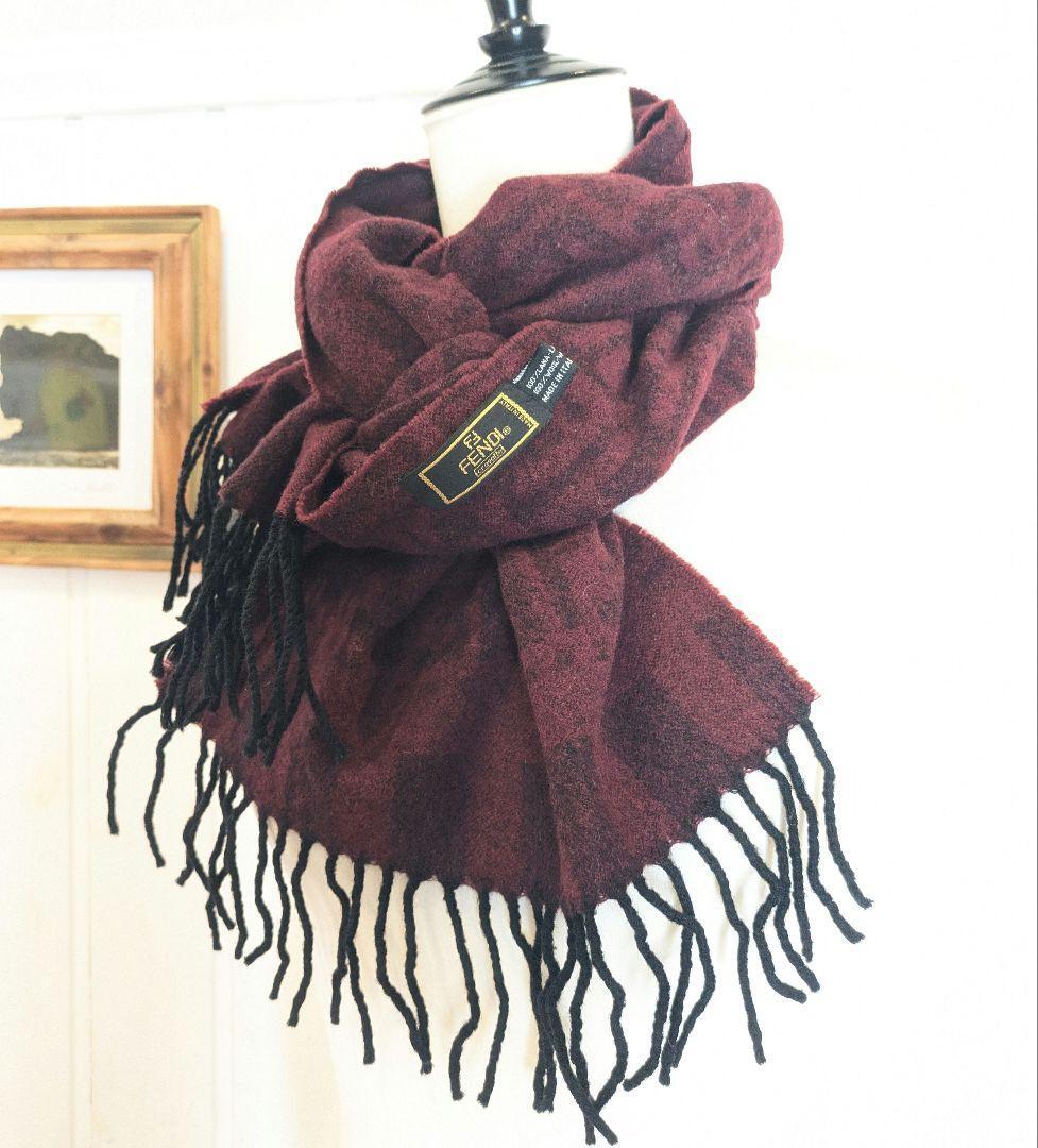 FENDI フェンディ 赤 マフラー ペカン柄 ズッカ柄