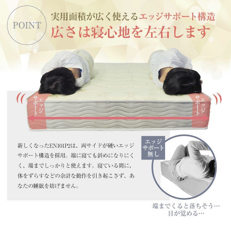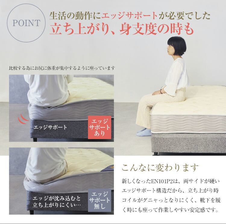 ・エッジサポートで、ベッドの端で寝ても落ち込まず寝姿勢維持できます