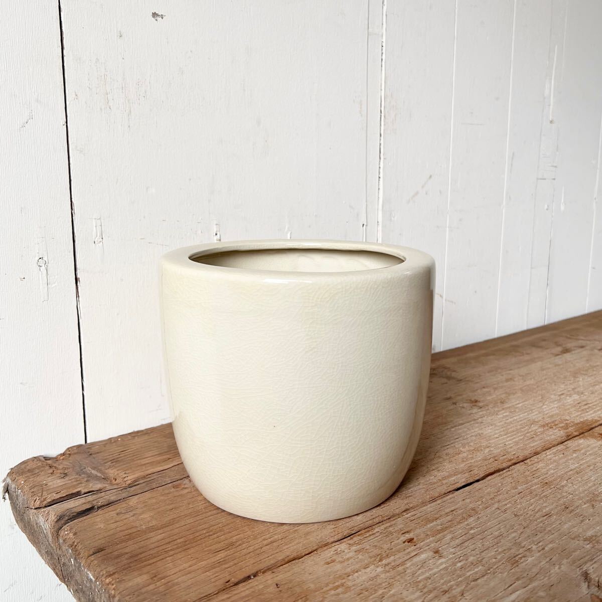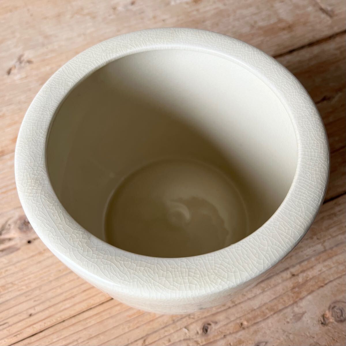 NO.5 貫入 建水 ? クリーム デッドストック 磁器 陶器 検: 茶道具 収納 フラワーベース 花瓶 アンティーク 鉢カバー 植木鉢 プランター