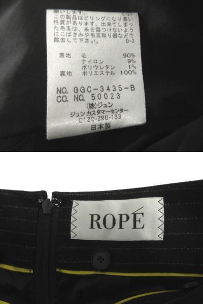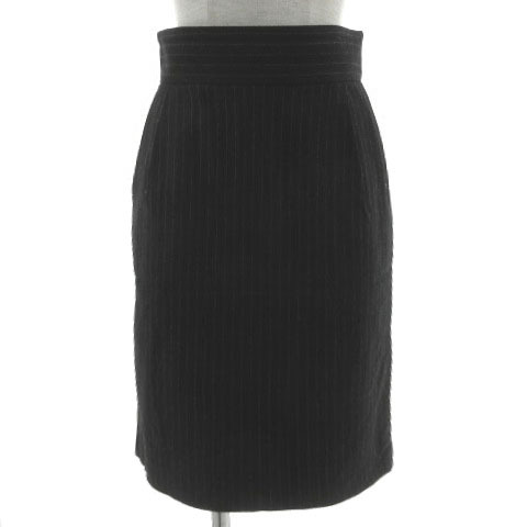 ロペ ROPE スカート タイト タック ミディ丈 裾スリット 日本製 起毛 ウール混 ドットストライプ ブラック 黒 グレー 38 レディース