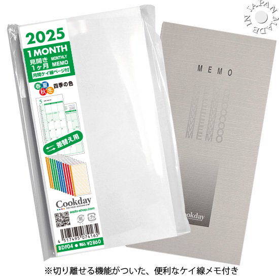 2025年版 Cookday 差替え手帳 [ヴィトン アジェンダ ポッシュ適合] AQDO 正規品 リフィル 月間カレンダー12月始まり BDF04 新品 送料無料!