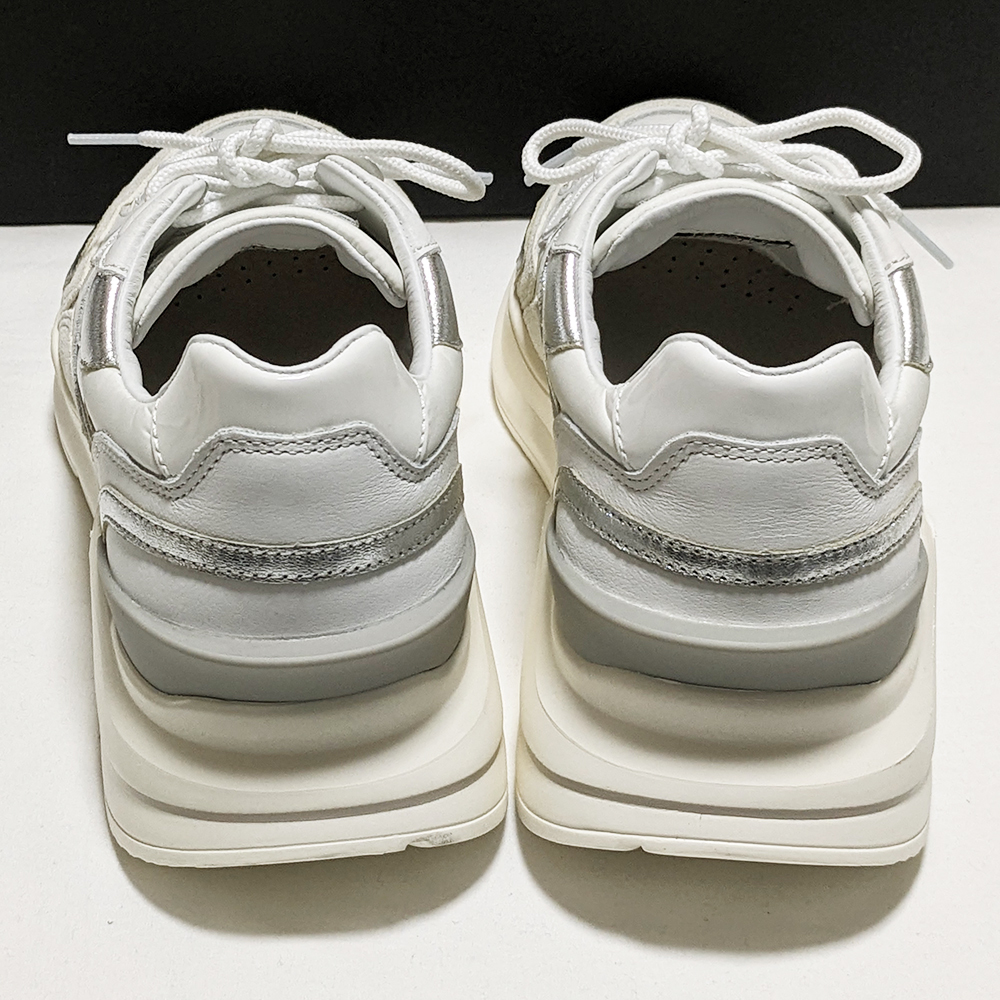 ホワイトのスムースレザー、ナイロン、ヌバック、エナメルを組み合わせの異素材MIXデザイン