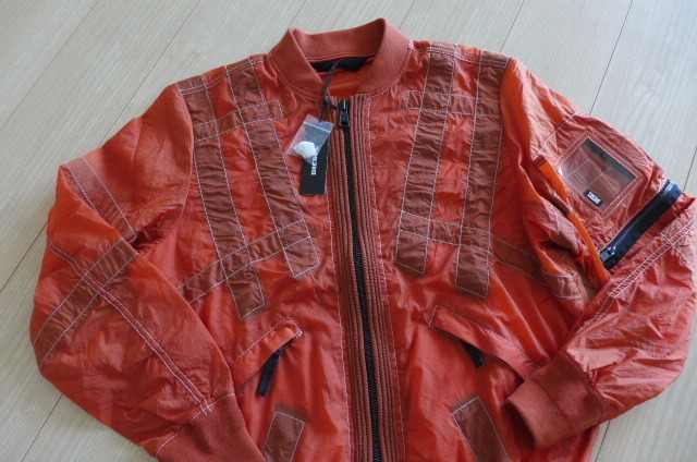 新品 即決 正規品 DIESEL グラフィックパイピング レフトスリーブ ボンバージャケット サイズL程(表記S) フライトジャケット ブルゾン MA-1