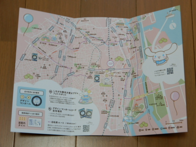 ■非売品・レア 品川まち歩きMAP-シナモロール-デザインマンホールパンフレット 聖地巡礼/大井町/武蔵小山/品川紋次郎