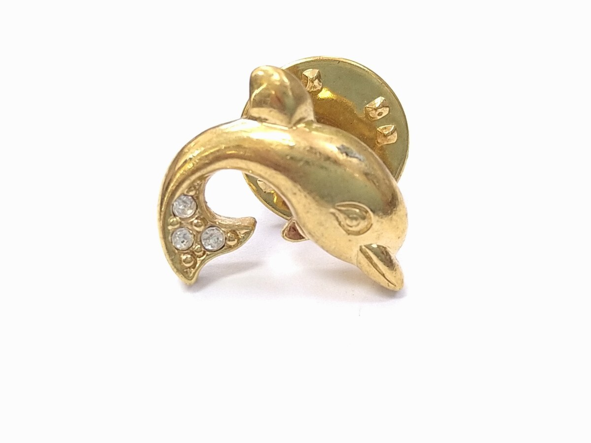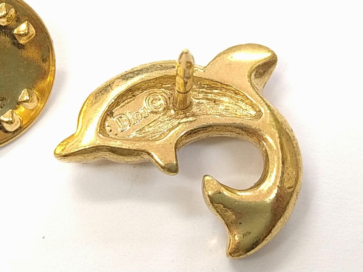 Christian Dior タイピン ディオール イルカ アクセサリー ヴィンテージ ゴールド ピンバッチ ☆ LH10.10