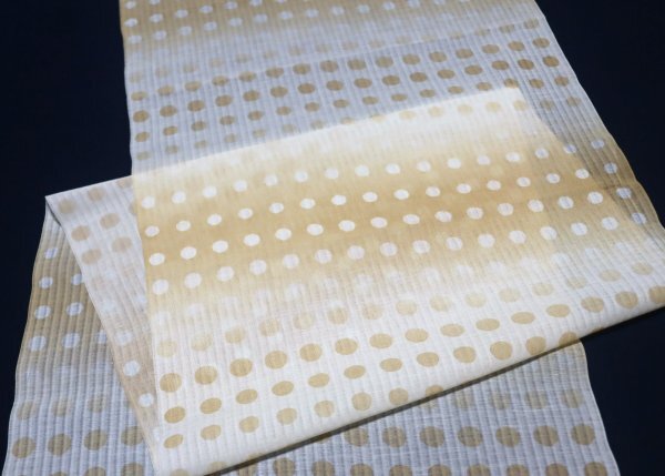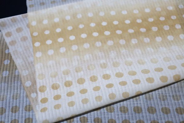 | 【京わぎれ】東レ 爽竹 縦絽 夏物長襦袢 はぎれ 横段ぼかしに水玉文様 薄黄土色系×薄きなり色 うそつき袖・替え袖用 2.2m ② | ||||