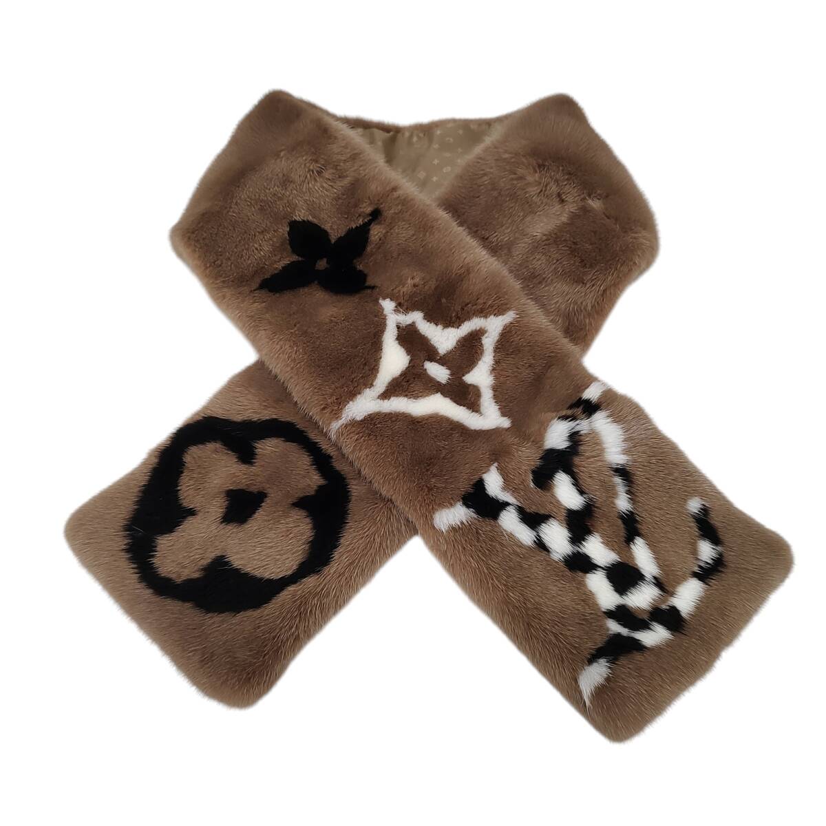 LOUIS VUITTON ルイ・ヴィトン エシャルプ プレイグラム ミンク シルク マフラー ストール M77862 F ブラウン