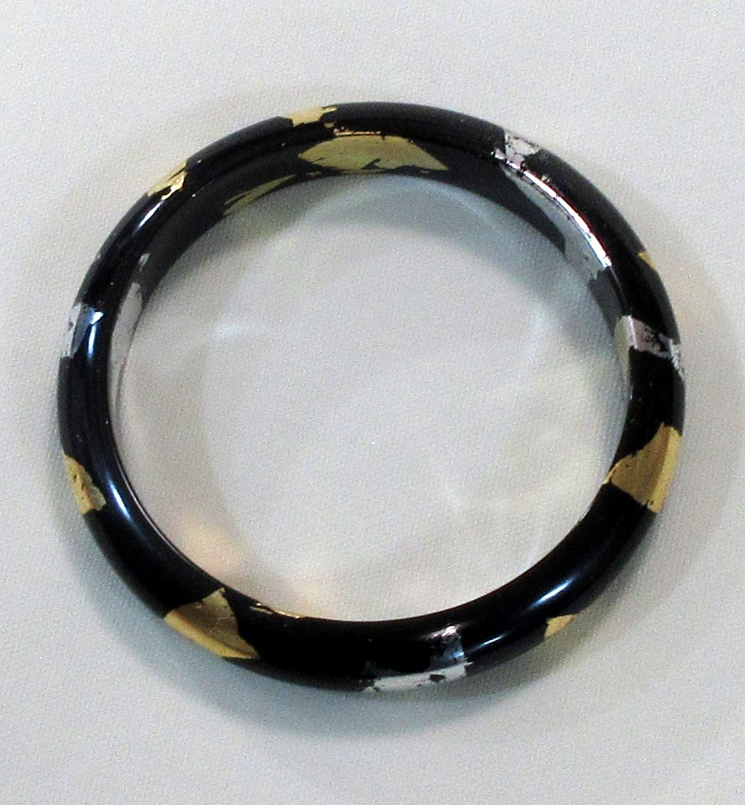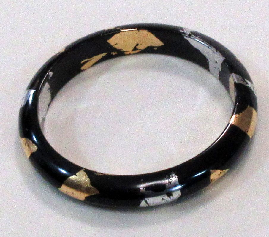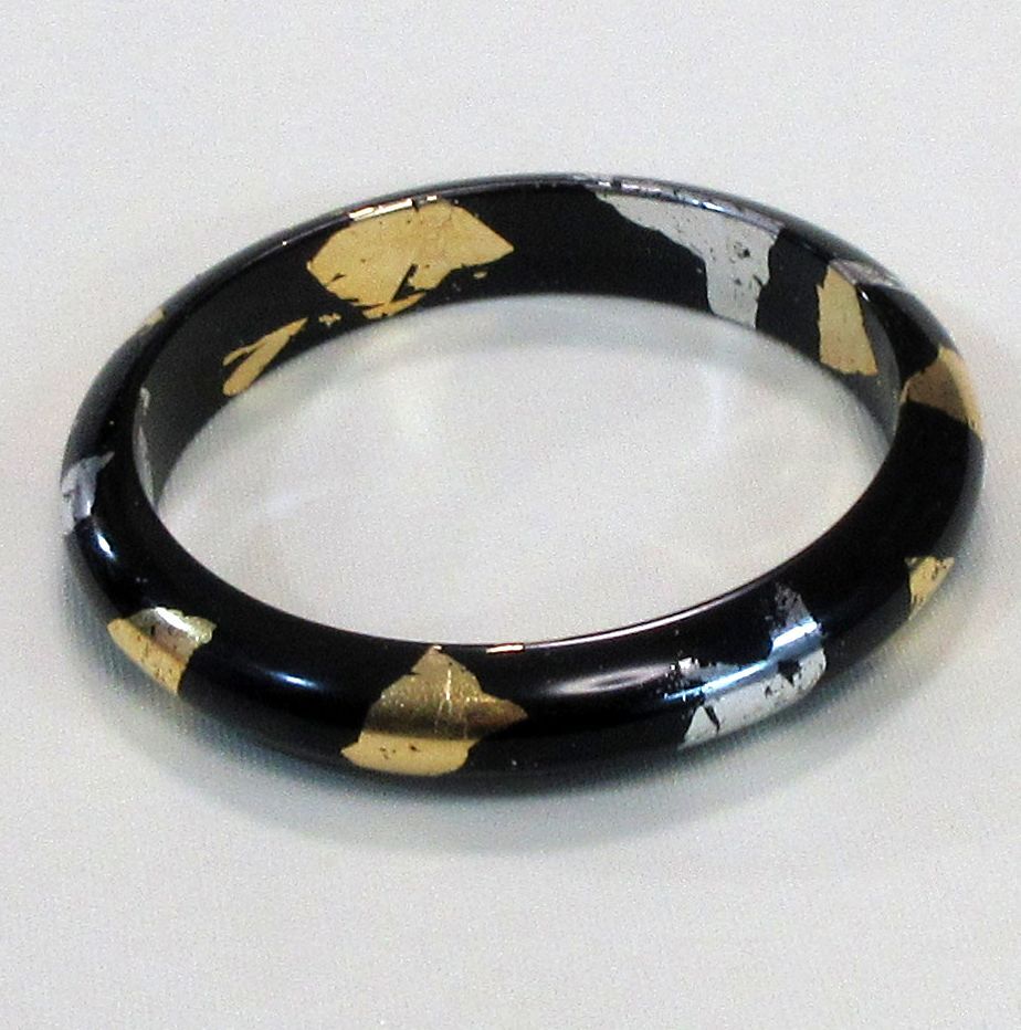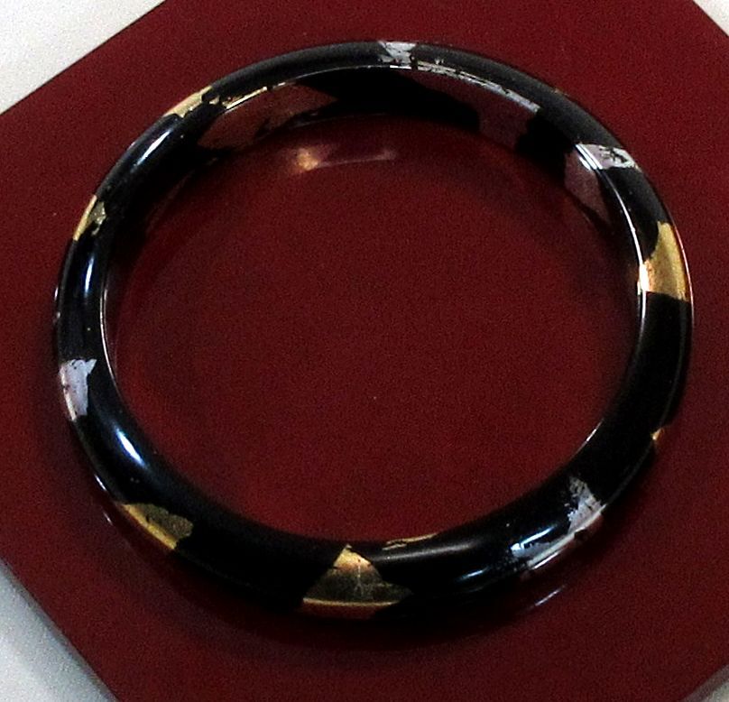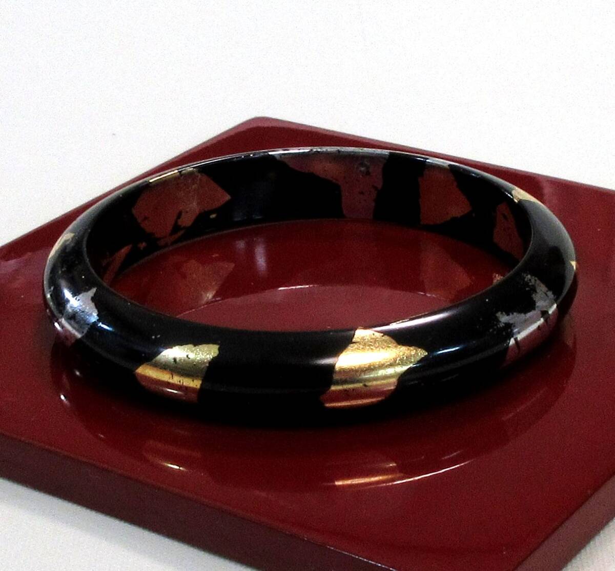 木製漆塗りのブレスレット 手描きの箔蒔絵が塗りに映えます 手塗漆の質感が素敵です 通常小売価格8000円 渡部秀昭作 会津工芸新生会 サイズ 直径8.5cmm×1.2cm 内寸 6.5cm 状態: 新品 箱無 送料無料です | |||