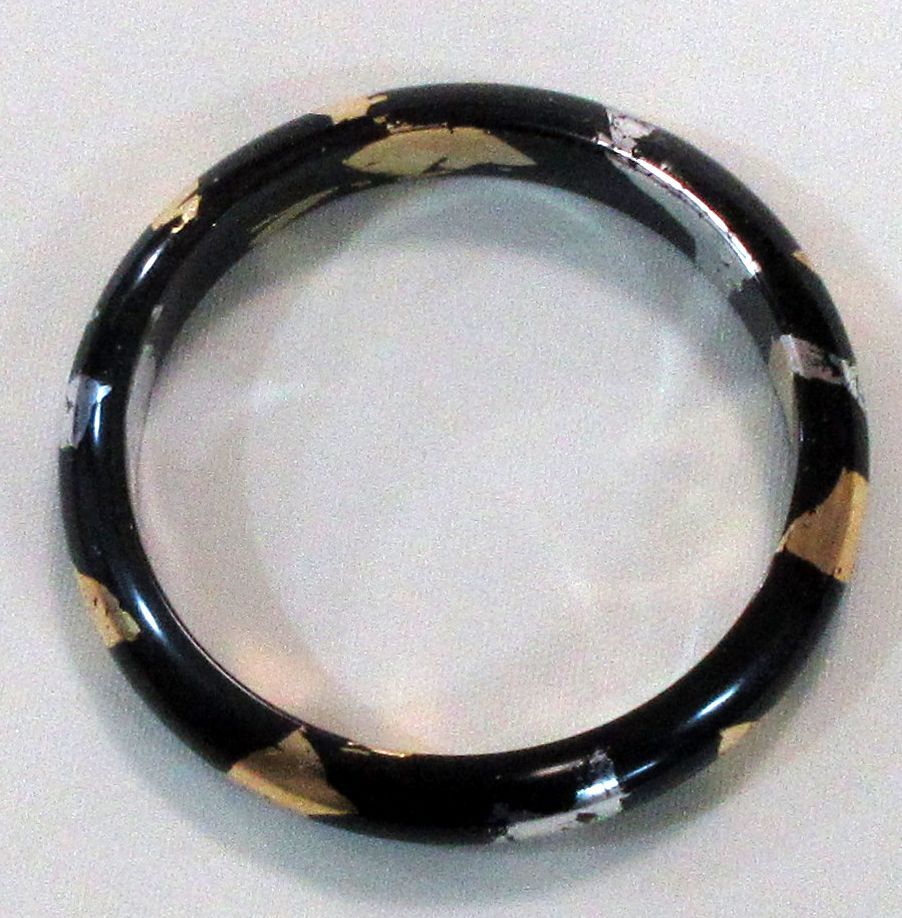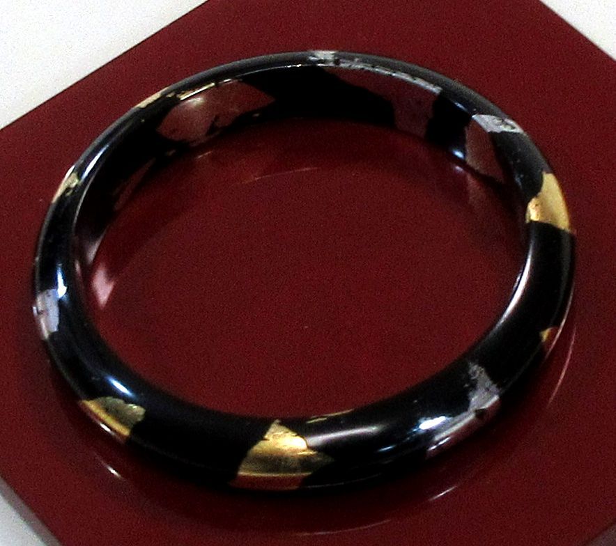 ★手描き蒔絵★会津塗 木製漆塗 ブレスレット 蒲鉾型 黒塗 ★送料無料 | |||
