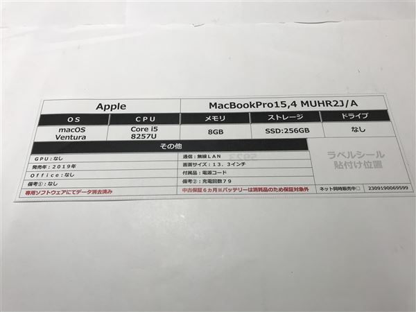 | MacBookPro 2019年 MUHR2J/A【安心保証】 |