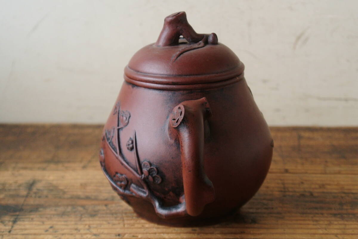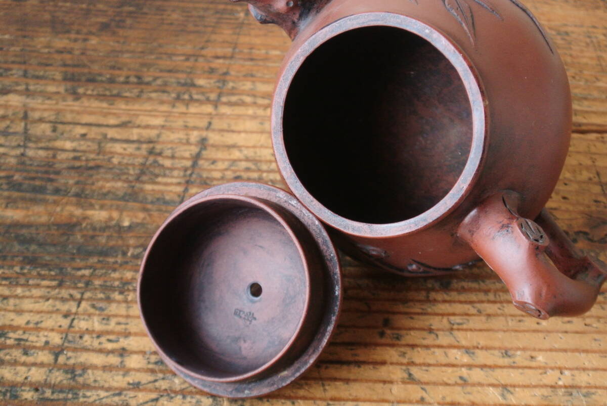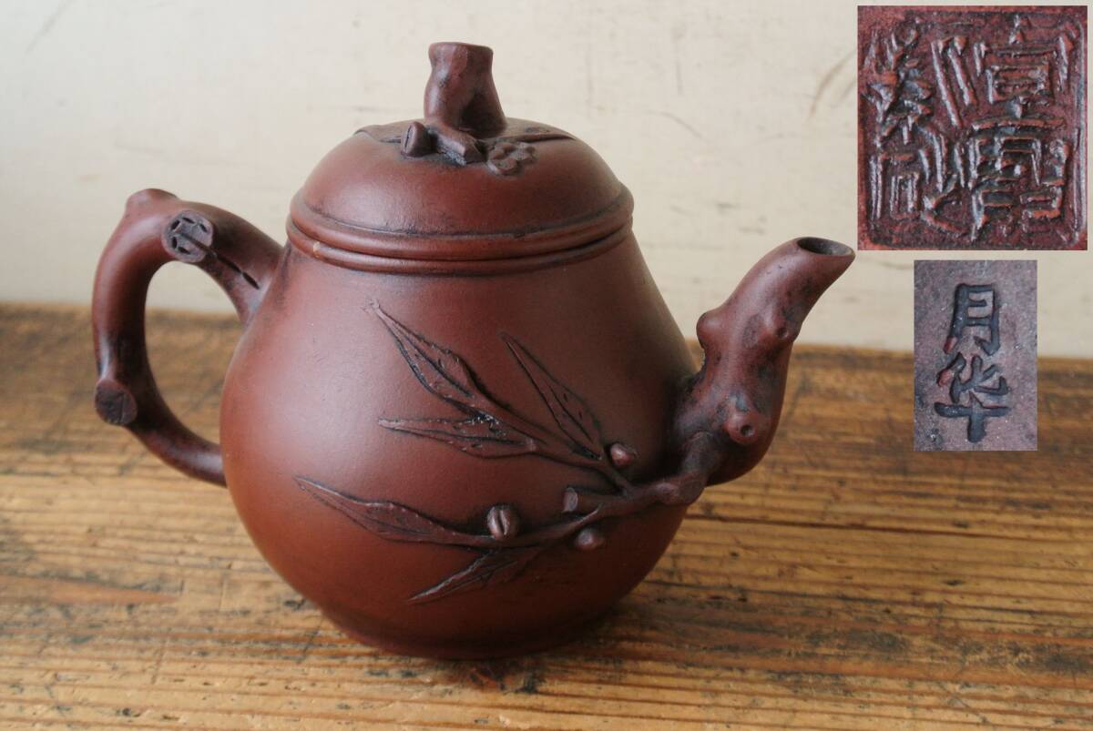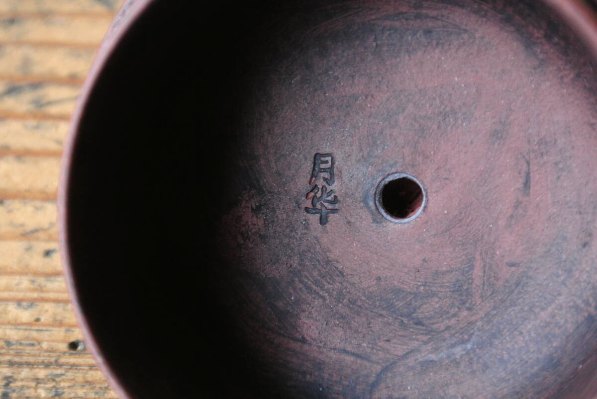 古作 宣興紫砂款 月華 在銘 朱泥 急須 検】煎茶道具 茶器 茶注 時代