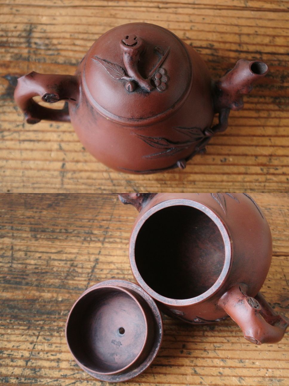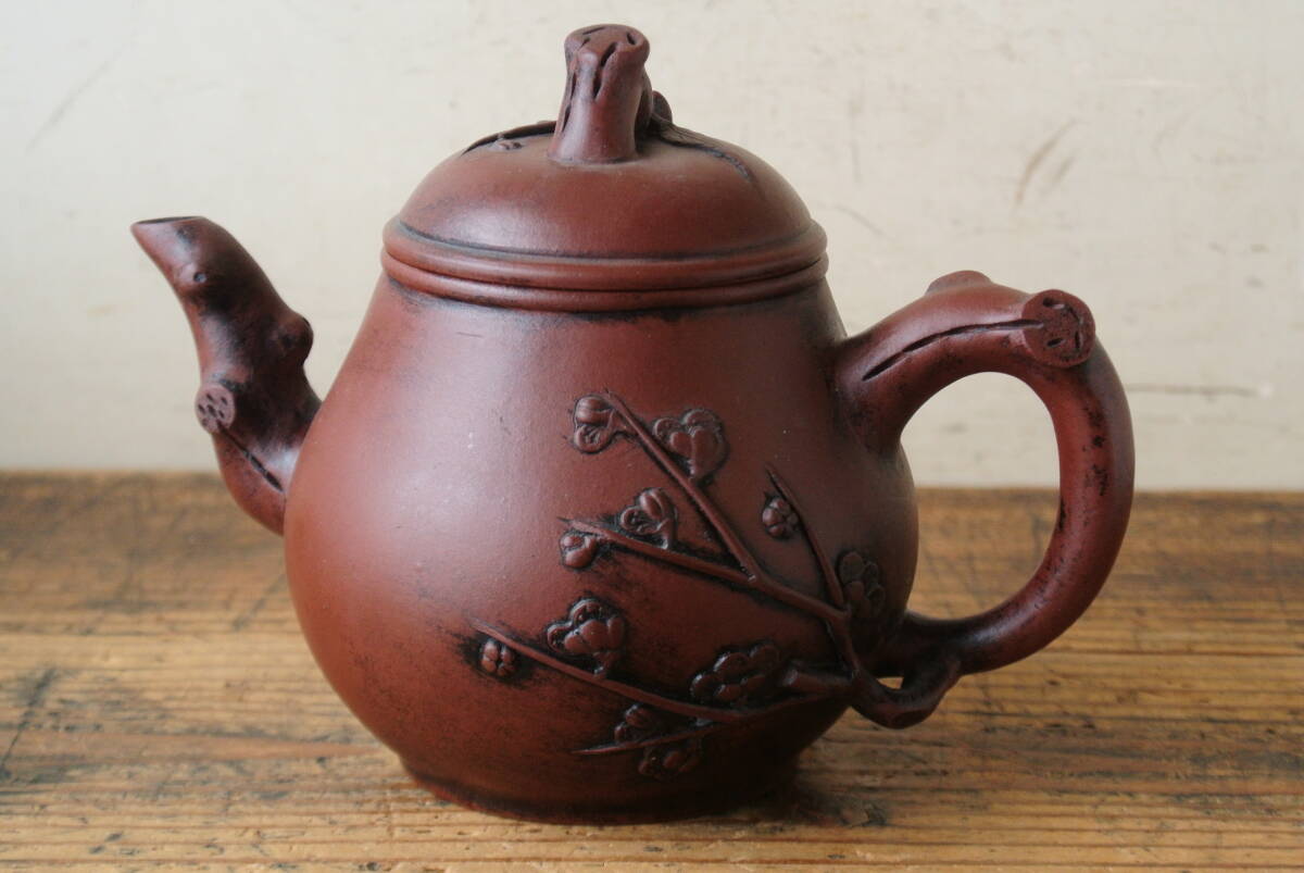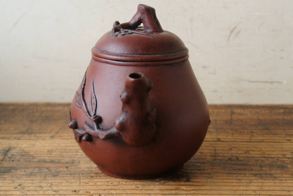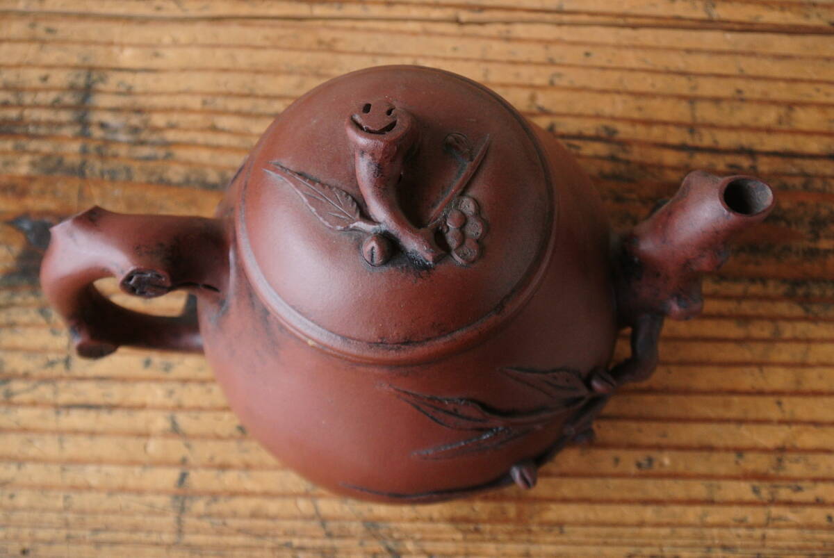 古作 宣興紫砂款 月華 在銘 朱泥 急須