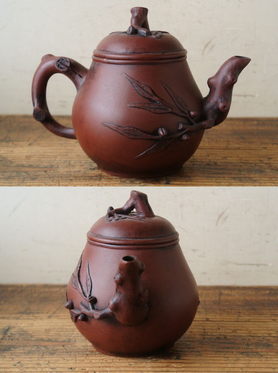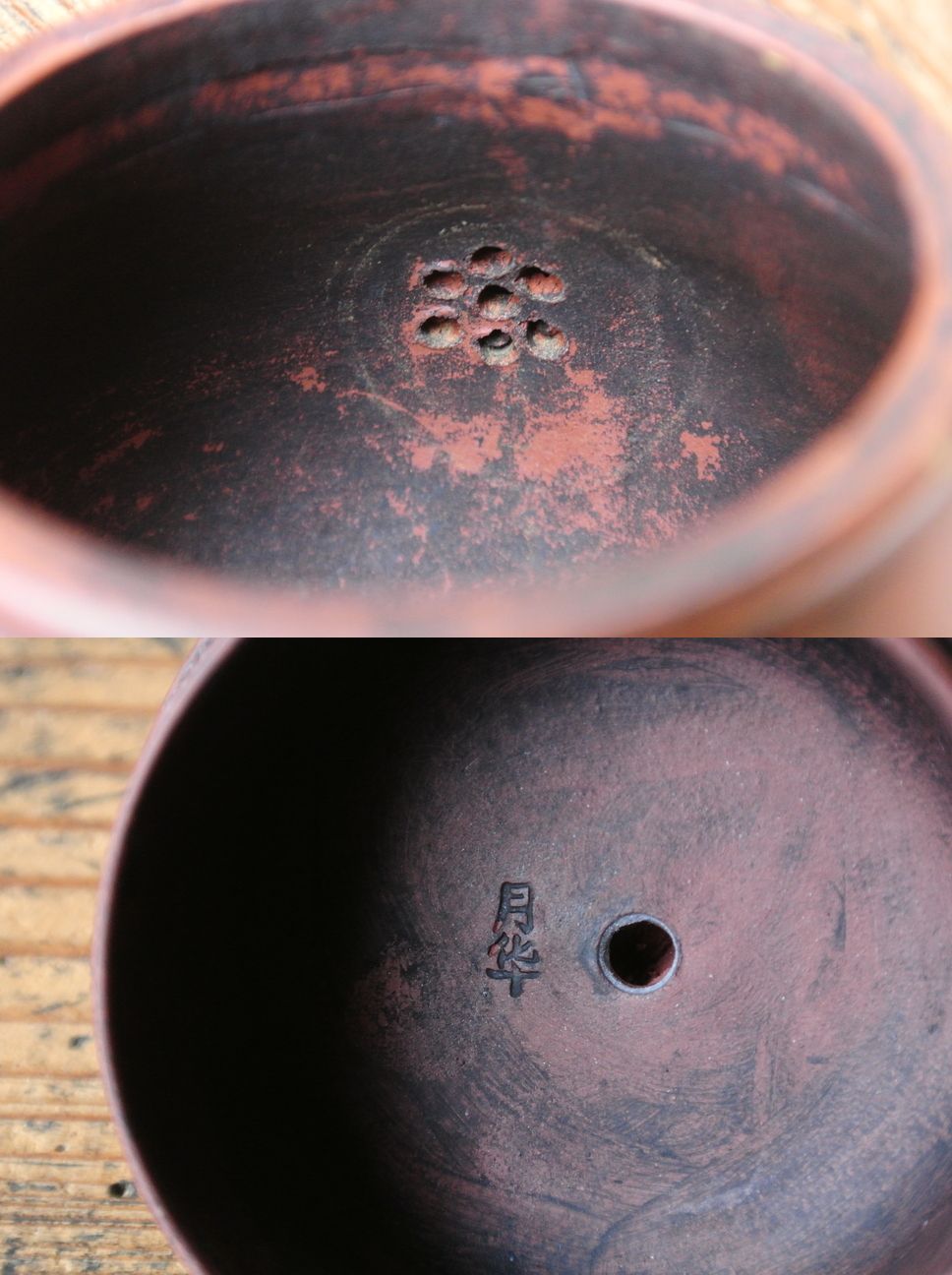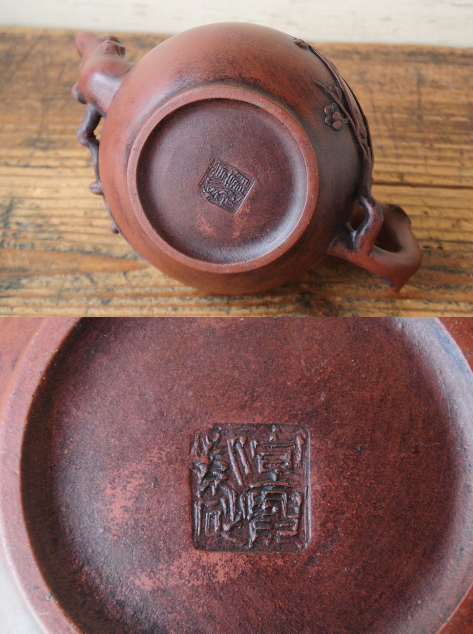 古作 宣興紫砂款 月華 在銘 朱泥 急須
