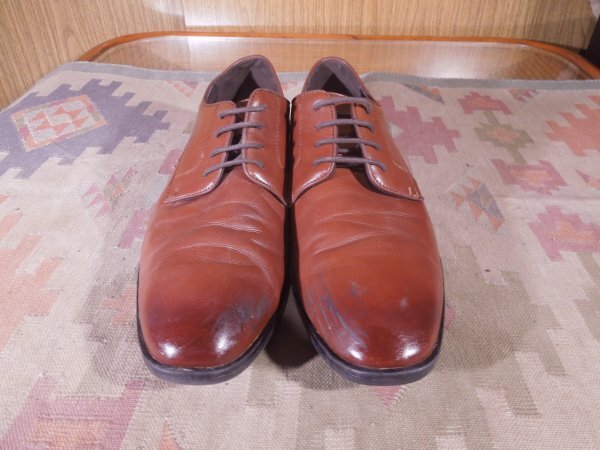 商品説明 | アメリカで買い付けた、H&M、プレーントゥです。 色はダークブラウン、ラバーソール、CHINA製、 ユースドで細かな傷はありますがソールの減りも僅かで良いコンディションです。 サイズ表示はUS 10、EU 43、日本の28センチ位、 アウトソールの実測は長さ31センチ、最大幅10.6センチ。 |
