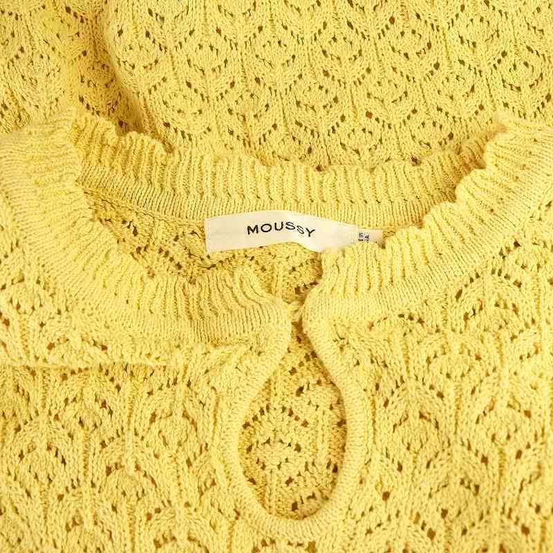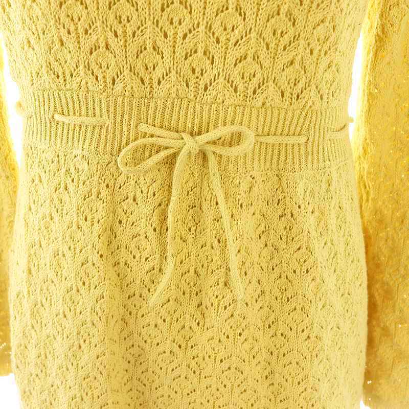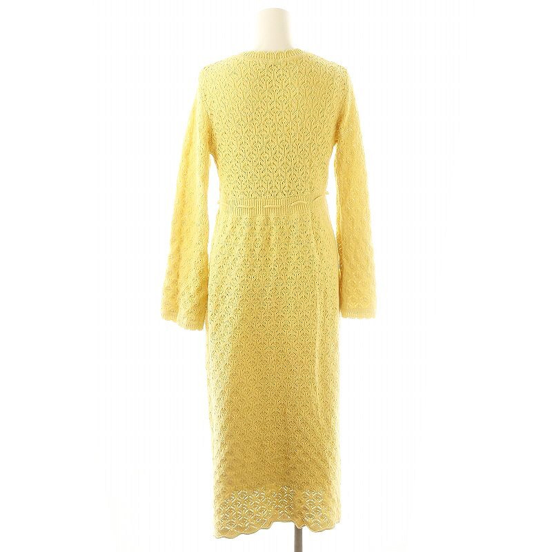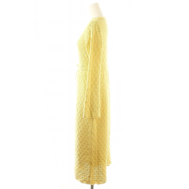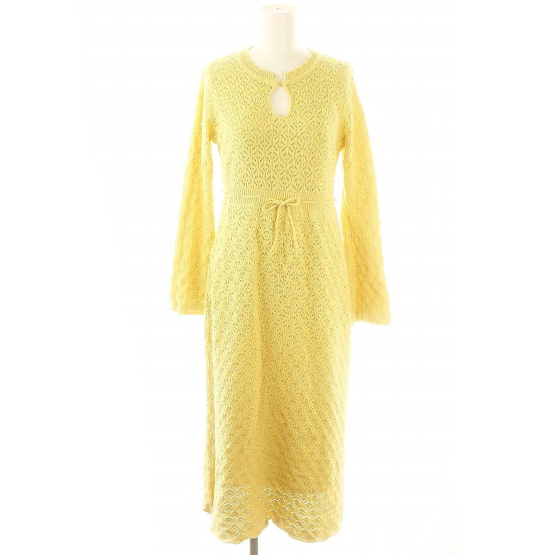 マウジー MOUSSY レースニッティング LACE KNITTINGドレスレース編みワンピース ロング丈 ミモレ丈 長袖 インナー付 F 黄