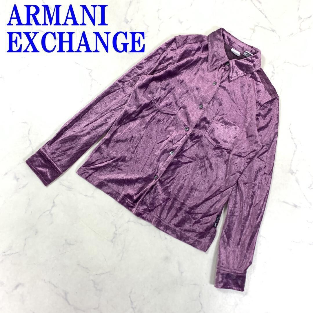アルマーニエクスチェンジ 長袖シャツ ブラウスARMANI EXCHANGE パープル ベロア 紫 XS C1822