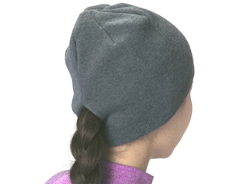 ■温度調整機能素材アウトラストを使用したレディースニットキャップ。ウォーキングやジョギング時に髪をまとめれるよう、後頭部に通し穴を採用した便利なアイテム。