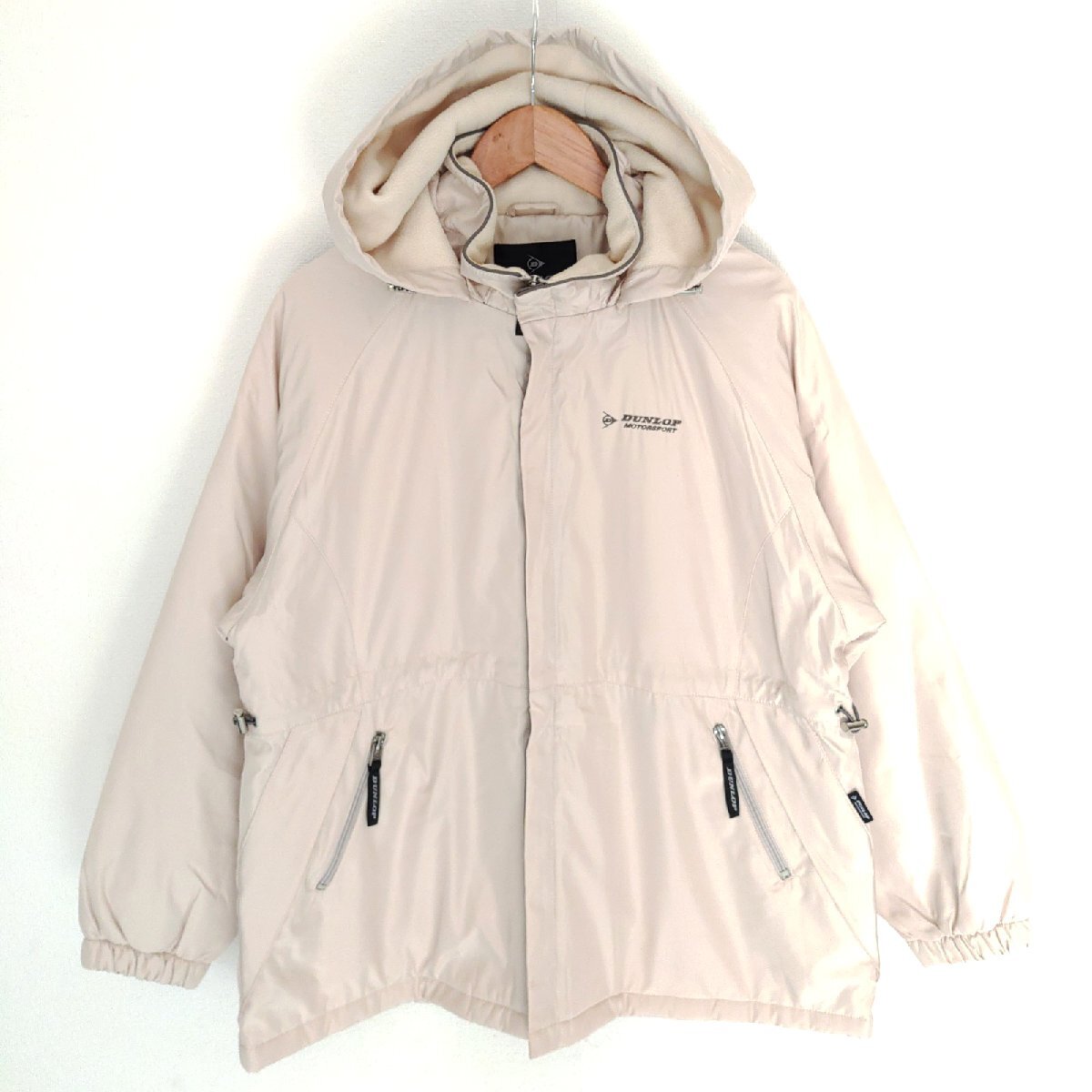 (^w^)b DUNLOP ダンロップ 長袖 ジップ 中綿 ジャケット パーカー フーデッド ジャンパー ブルゾン 防寒 スポーツ アイボリー LL O11460DD