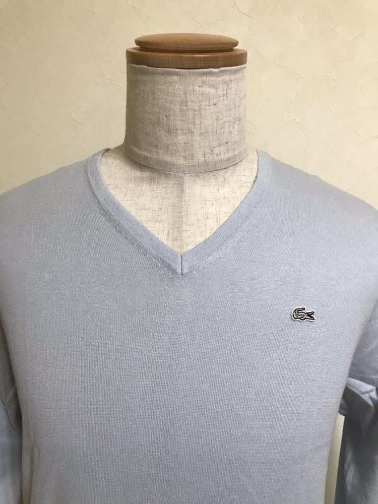 LACOSTE COTON CACHEMIRE ラコステ Vネック セーター カシミヤ 綿 サイズ3 長袖 トップス ライトブルー 薄手 銀ワニ