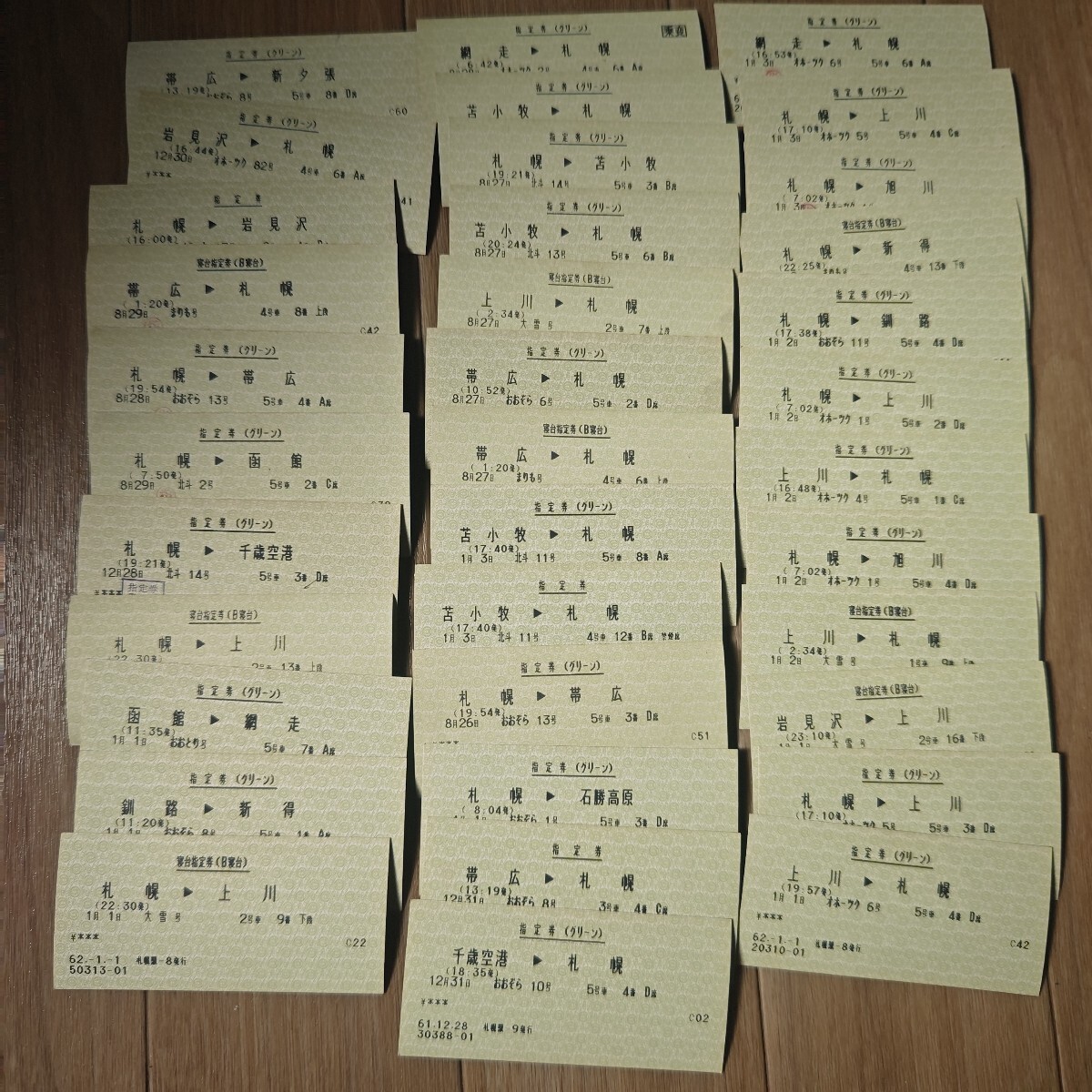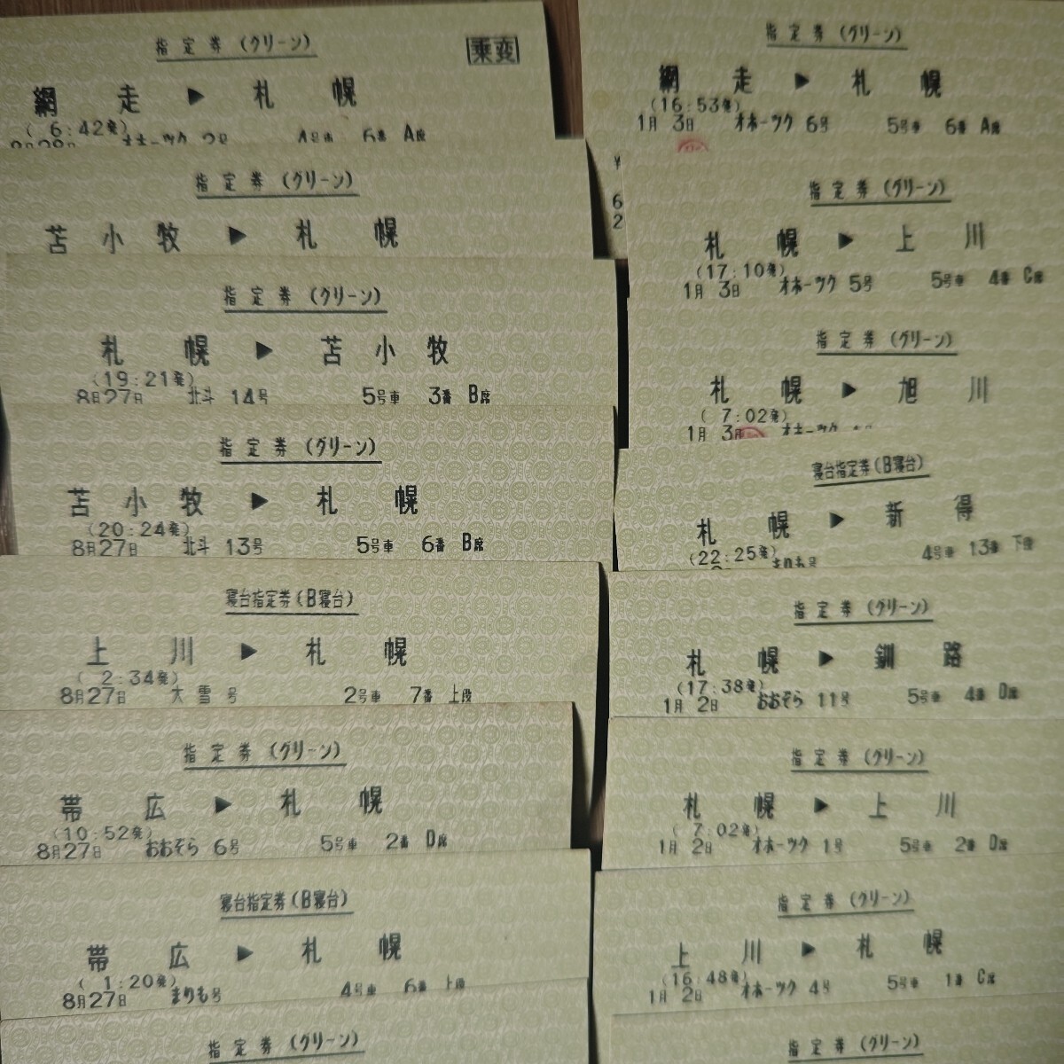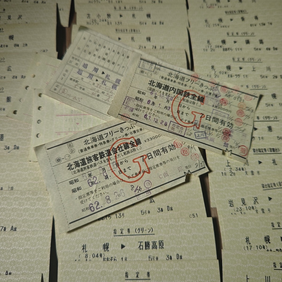 昭和時代の北海道フリーきっぷグリーン用で、使用した各発券して頂いたきっぷです。