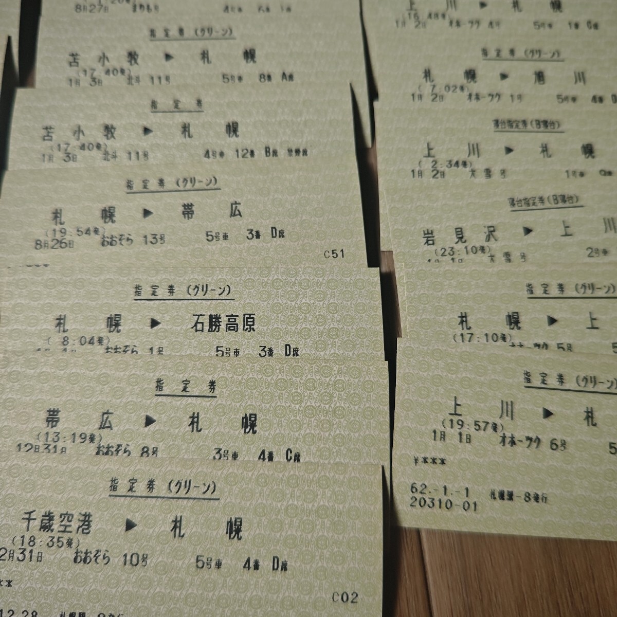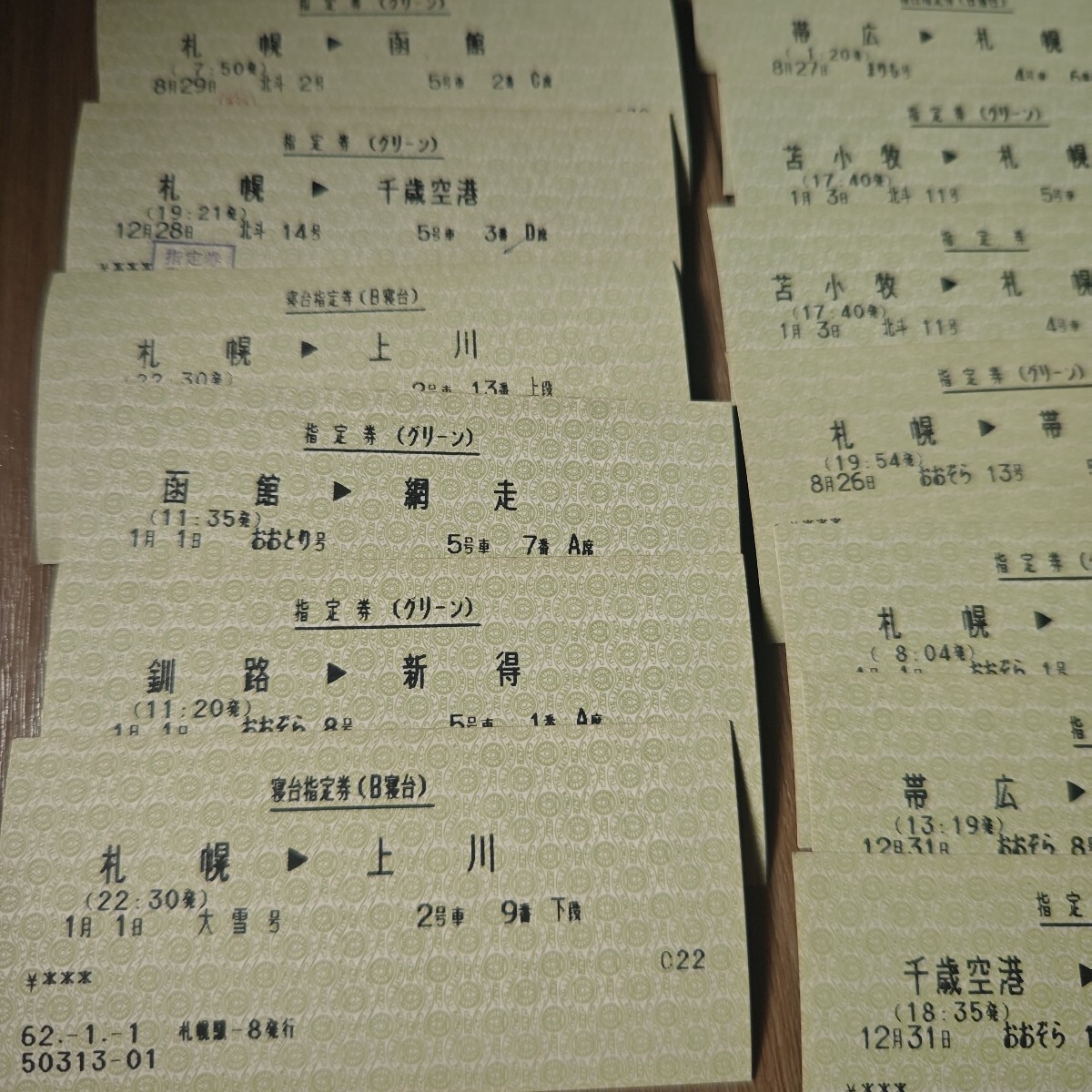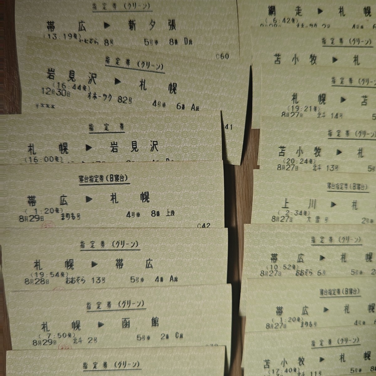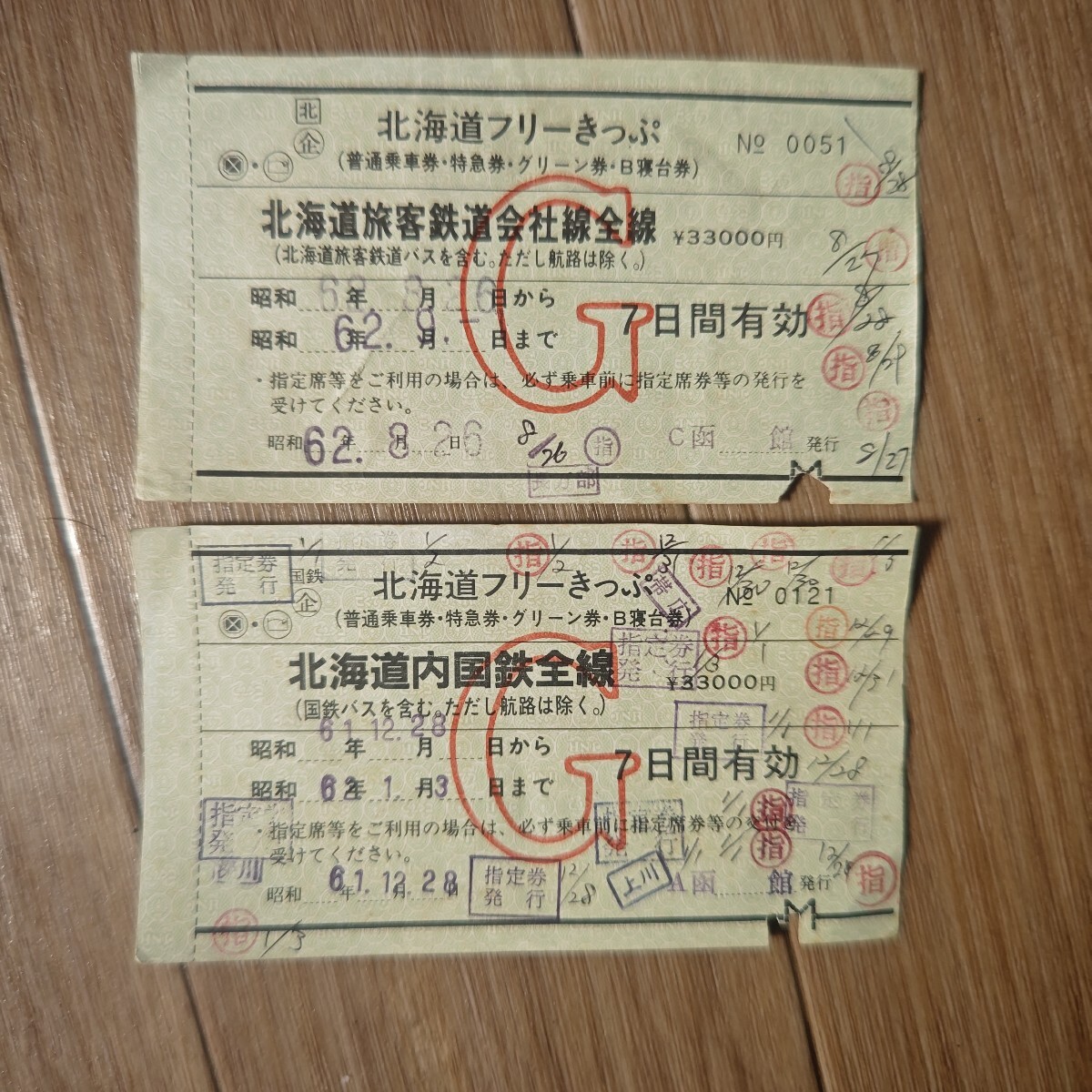 昭和時代の北海道フリーきっぷグリーン用で、使用した各発券して頂いたきっぷです。