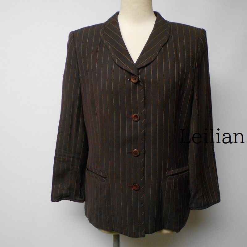 921307 Leilian レリアン 茶系柄 ジャケット 9