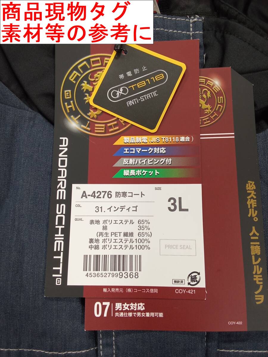 メーカー小売り希望価格:14,850円(税込) こちらの商品は、在庫があれば複数枚組が可能です。 1枚につき+1,500円で対応いたします。 ご希望の方は質問欄から、色とサイズをお問い合わせください。 在庫がありましたら、再出品いたします。 1枚組を落札後に、複数枚組への変更は出来ませんのでご注意ください。 メーカー:コーコス 商品コード:A-4276 商品名:防寒コート 季節:冬 使用素材: 表:エコ静電ソフトライトツイル(撥水) 裏:静電タフタ 混率: 表:ポリエステル65%・綿35% 裏:ポリエステル100% 中綿:ポリエステル100% 備考:色・サイズは出品タイトルで必ずご確認ください。 上記以外の詳細事項に関しては、 メーカーへ問い合わせるか、実店舗でご確認ください 商品の詳細に関してタグ記載事項のみ記載させて頂いております。 股上、裾わたり、裾幅等の質問にはお答え出来ません |