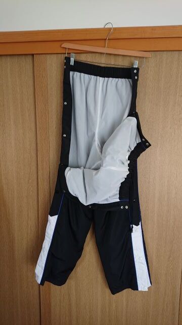 しっかりとしたナイロン素材でシンプル且つ格好良いパンツです。要所のブルーのパイピング