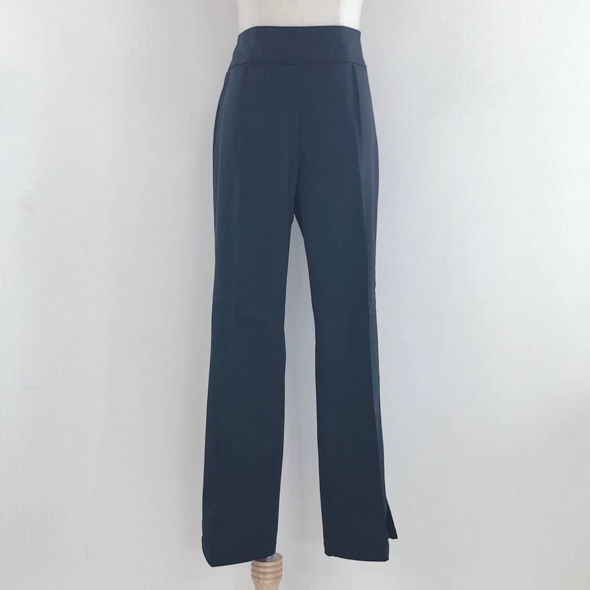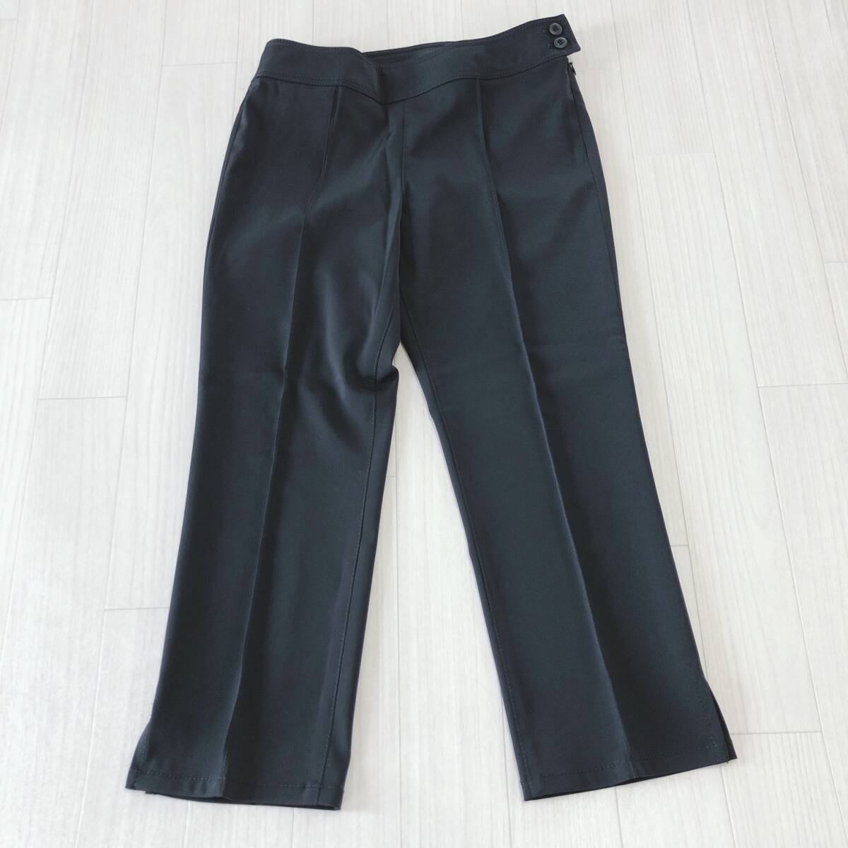 YX1006 美品 UNIQLO レディース ボトムス スラックス 七分丈 薄手 スリット ブラック 黒 クール オフィススタイル シンプル シック 春夏秋